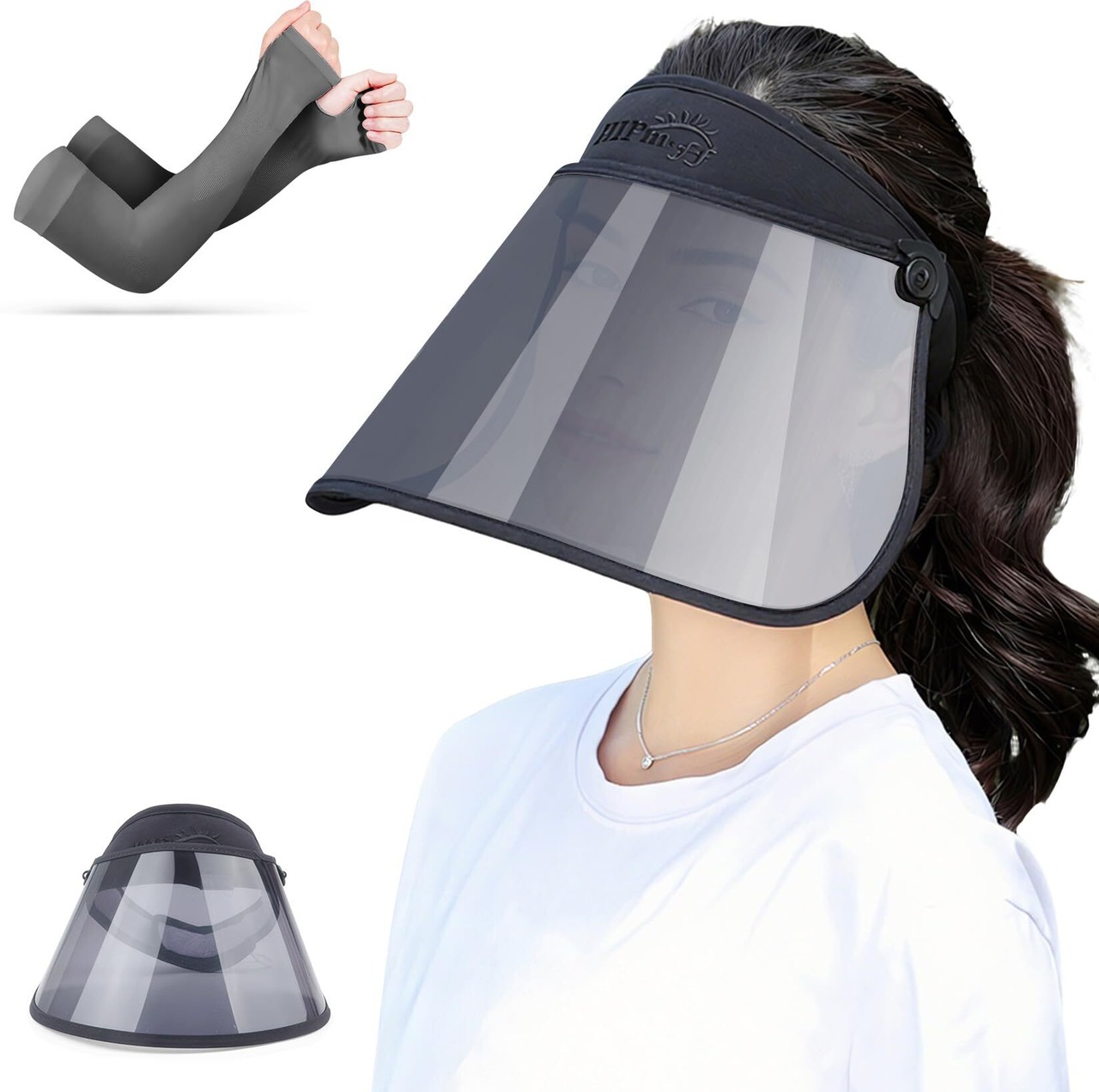[Cimoon] 折りたたみ機能追加 サンバイザー レディース 女性 uv カット レインバイザー 自転車 帽子 UPF50+ 紫外線対策 日焼け防止 帽子 折りたたみ式 収納便利 通勤 アウトドア 晴雨兼用 アームカバー付き