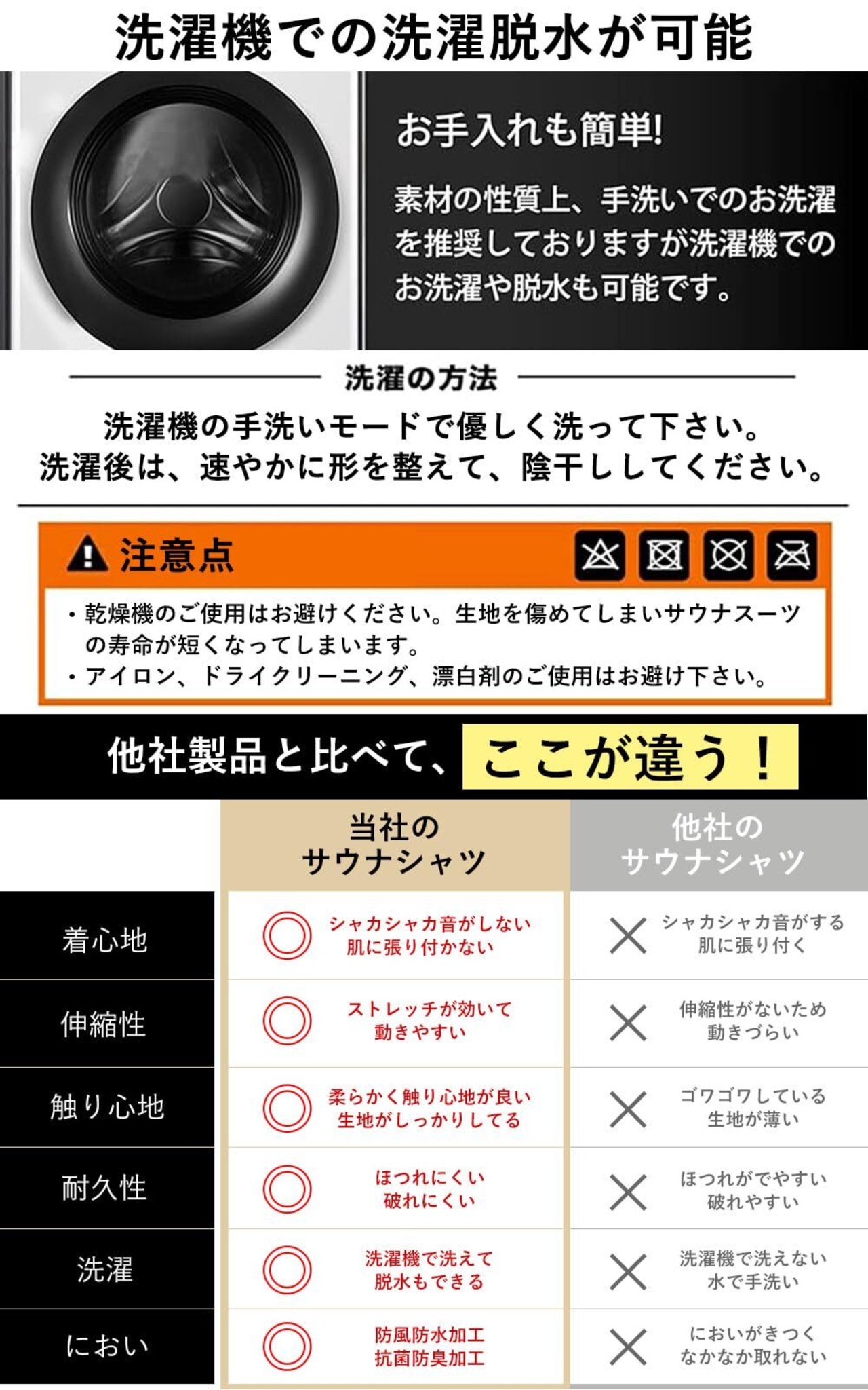 【特殊生地による発汗力】特殊素材をウェアの内側にコーティングした生地によって高い抗通気性、高保温性、優れた伸縮性を実現しました。それにより運動による体温上昇をしっかりと保温することで、より多く発汗を促します。 運動前のウオームアップや減量中の方などにオススメです。