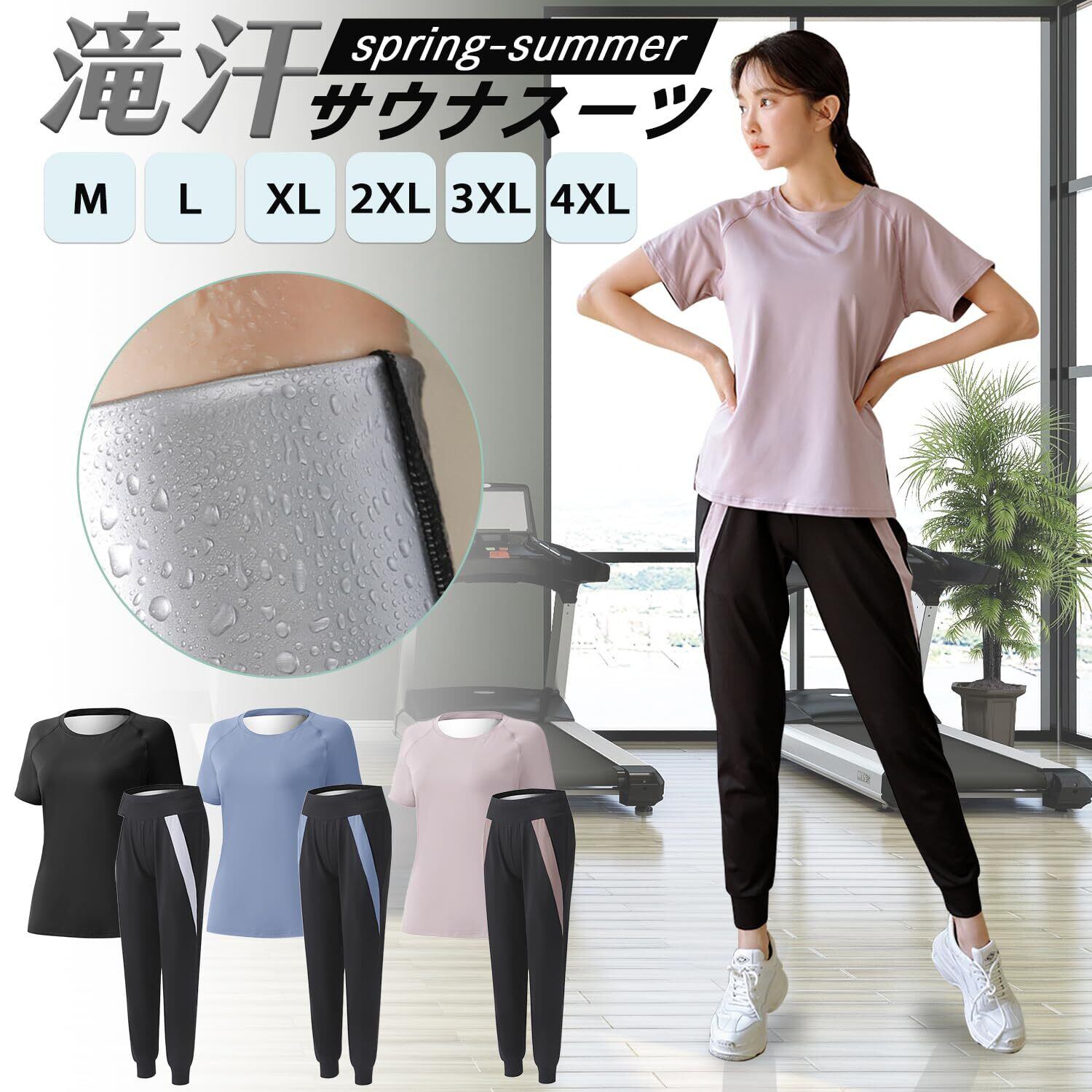 [Mie-Mie] サウナスーツ レディース 上下セット 発汗ウエア 半袖 ジャージ スポーツウェア 春 夏 発汗 大きいサイズ ランニング ヨガ ウェア