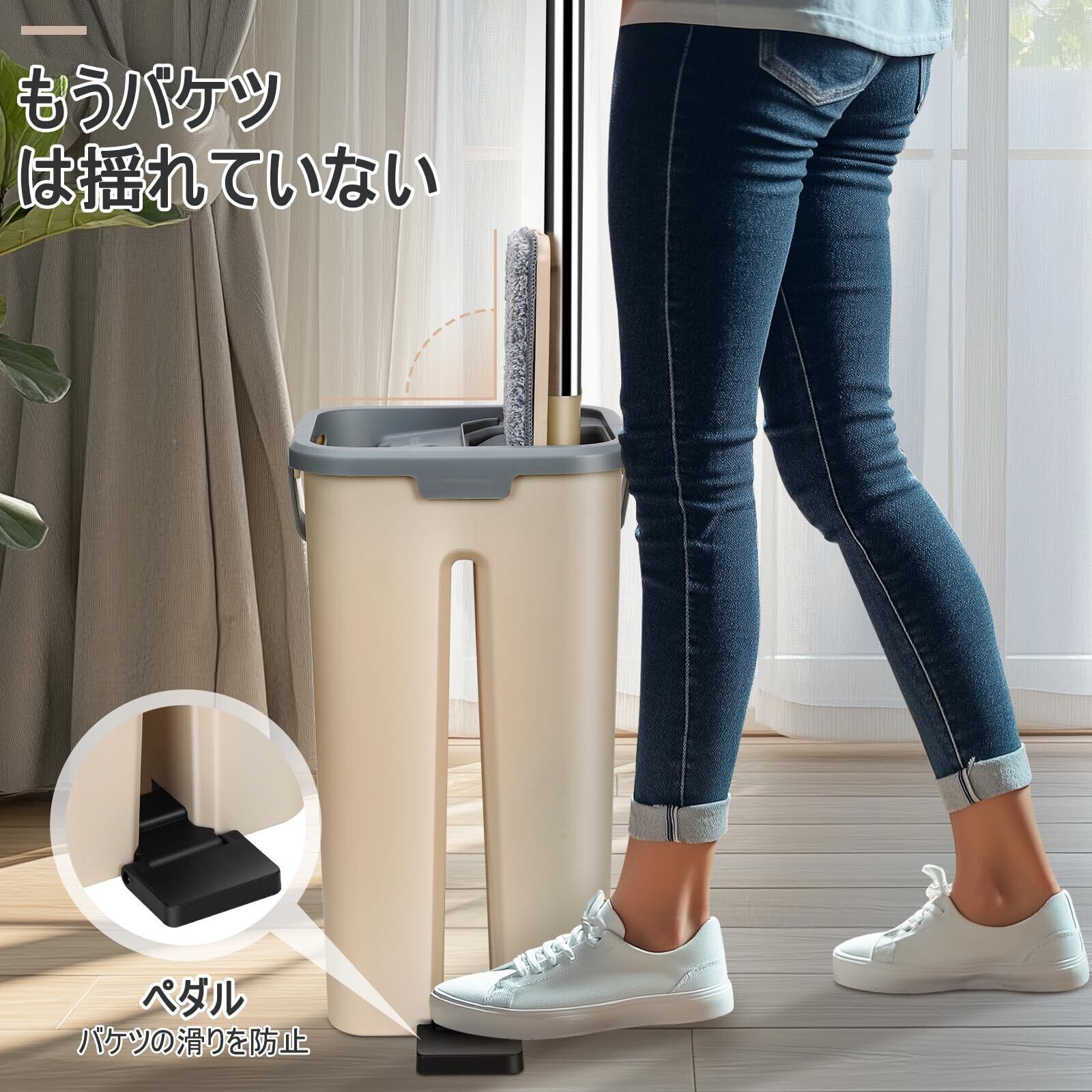 【在庫セール】Masthome モップ バケツ 絞り器セット フロアモップ 乾湿両用 水拭きモップ フロリングワイパー 床掃除 軽量 360°回転 手洗い不要 3枚マイクロファイバーパッド付き ベージュ | SmartLiving+