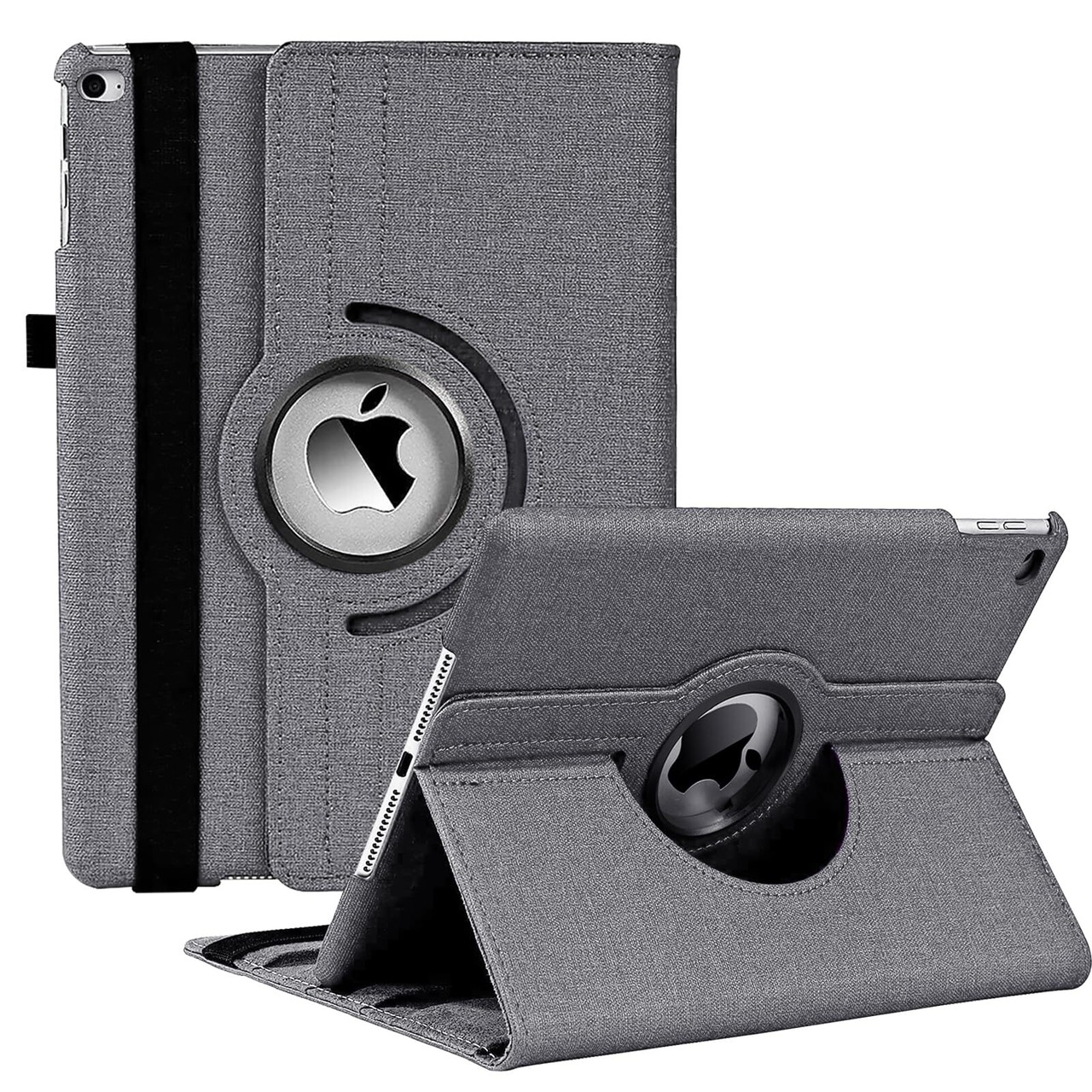 iPad ケース 9.7インチ 2018/2017 (第5世代 第6世代)iPad Air Air 2 カバー 360度回転式 手帳型タブレットケース オートスリープ機能 3段階調節可能 固定バンド 脱落防止 耐衝撃 耐久性 おしゃれデニム生地 (グレー)