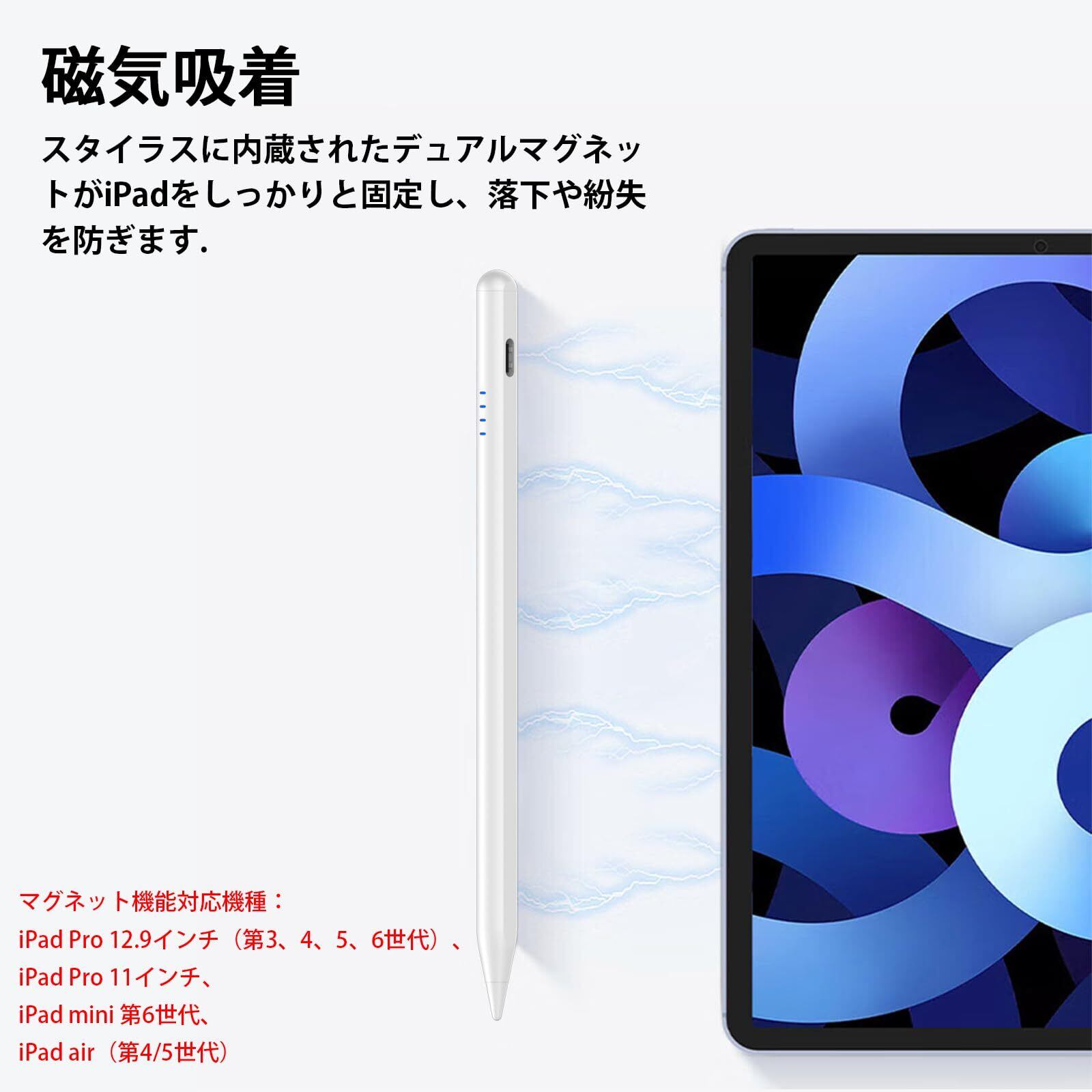 【人気商品】【2025年新登場】タッチペン iPad ペンシル アップルペンシル互換ペン 傾き感知 磁気吸着 Type-C急速充電 誤作動防止 スタイラスペン 2018年以降iPad/iPad Pro/iPad air/iPad mini対応 (ホワイト)