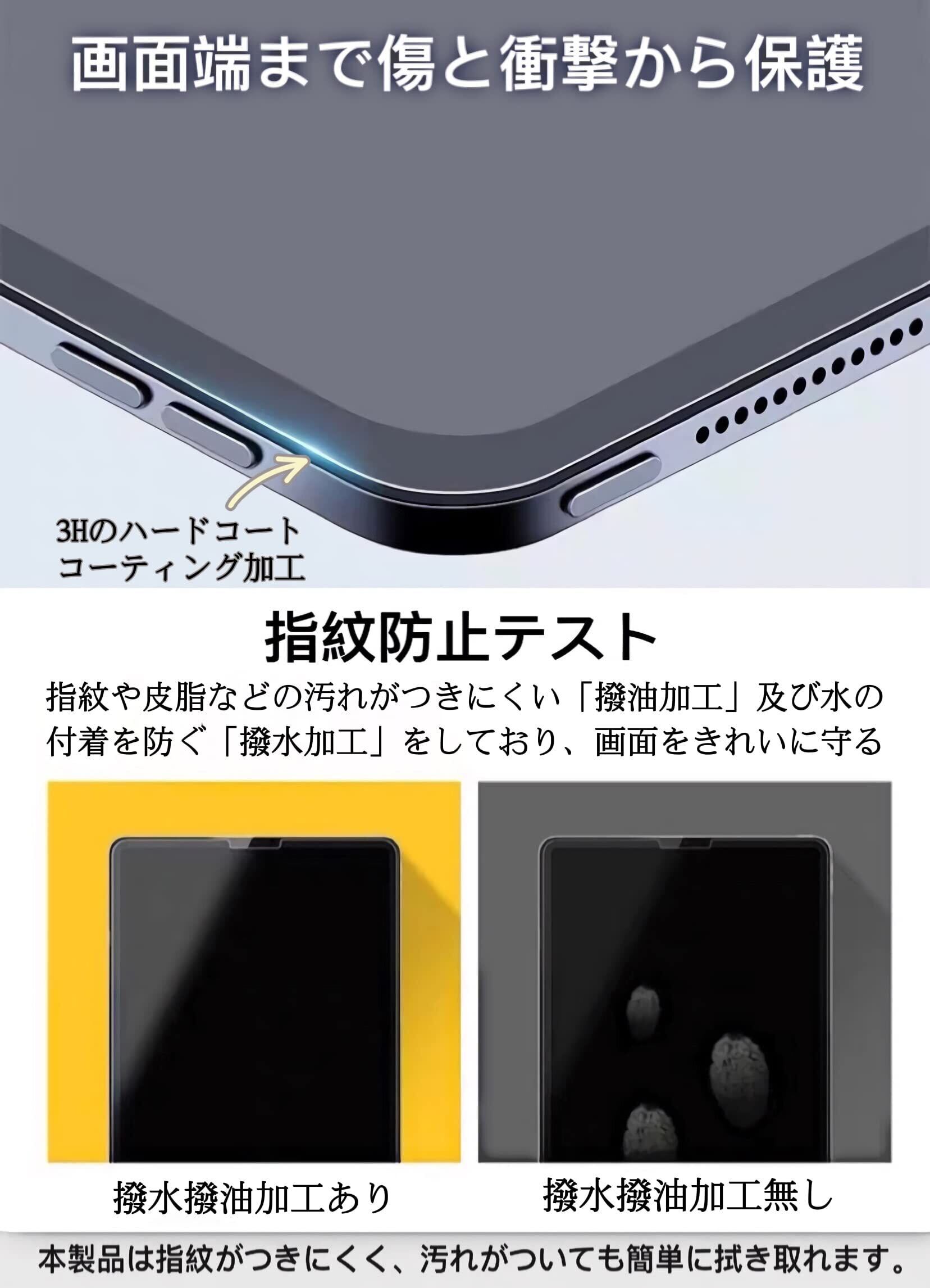 指紋や皮脂などの汚れがつきにくい「撥油加工」及び水の付着を防ぐ「撥水加工」をしており、指紋や汚れが付きにくくになり、付着しても簡単に拭き取れます。常に美しい画面と滑らかでよい操作が得られます。