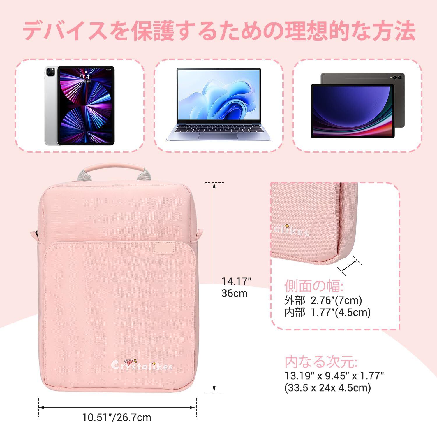 【数量限定】Crystalikes 13インチ Proctive タブレットスリーブバッグ ハンドルキャリーケース ショルダーストラップ付き iPad Pro 11インチ、第10世代 10.9、iPad 9/8/7世代、Tab S8/S9 11インチに対応 ピンク