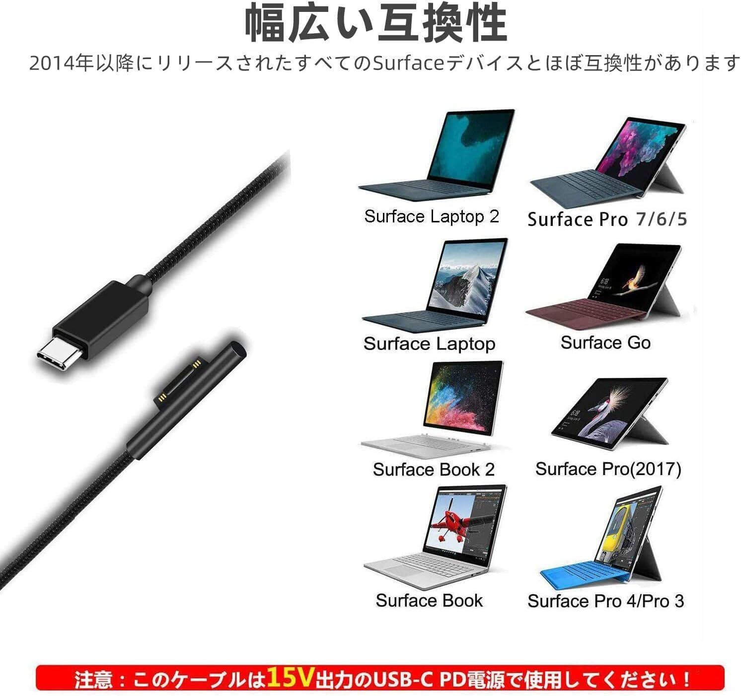 【ご注意】45w、15v以上のPD対応充電器が必要です。PD機能を用いた充電器を必ず使用してください。一部のApple PD充電器は45w、15v出力がないためケーブルには使用できません。規格に合った充電器を使用しない場合、このsurface充電ケーブルは使用できません。