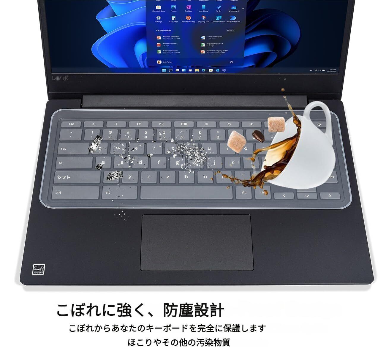 液体の侵入を防ぎ、キーボードをホコリや食べかすから保護します。コーヒーやジュースなどの液体をこぼしても内部への浸透を阻止。キーボードの劣化を防ぎ、寿命を延ばします。