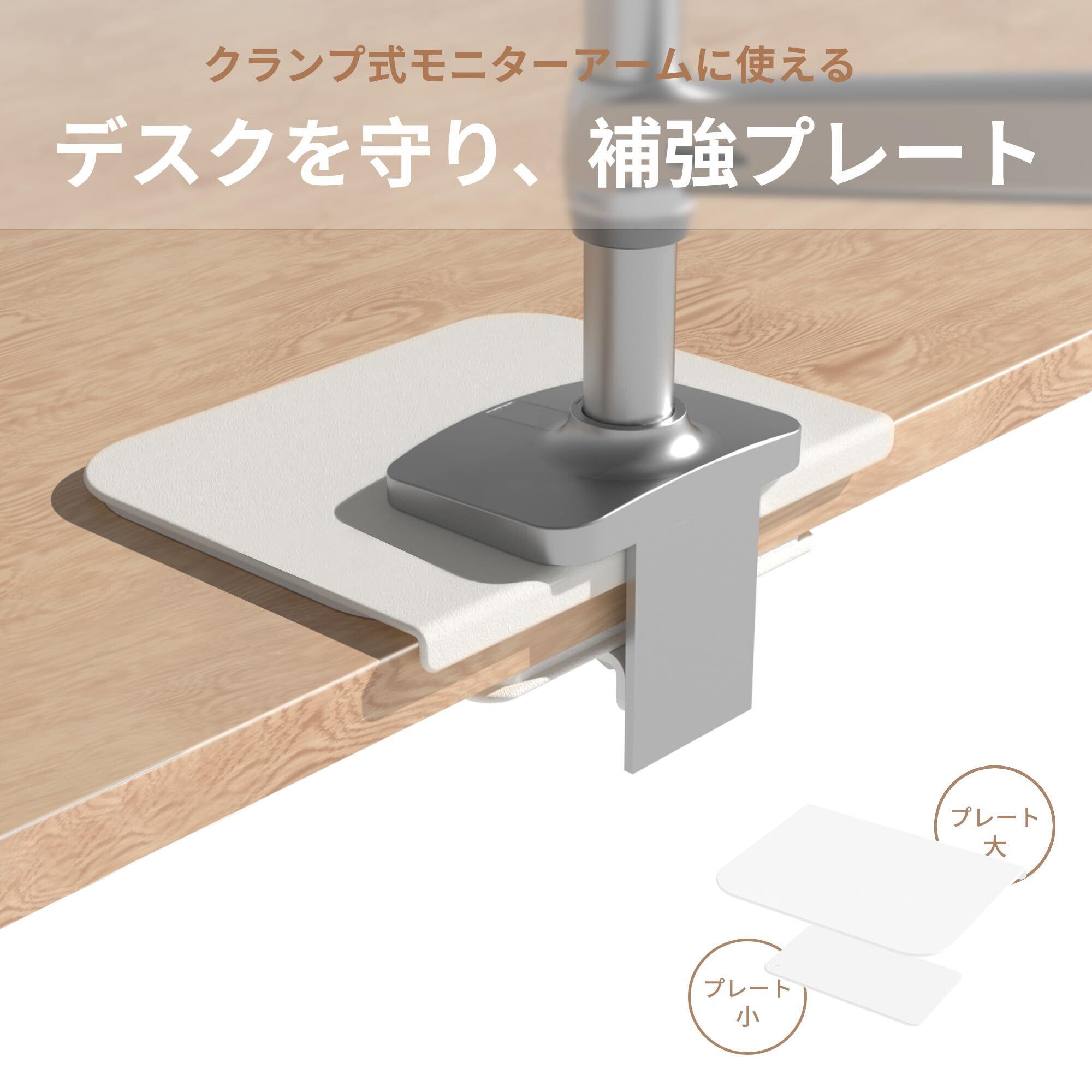 ERGOMAKER モニターアーム補強プレート モニターアーム固定 傷防止 デスク保護 保護シート 滑り止めシート付き 天板補強 取付部硬さ強化対策 (ホワイト)