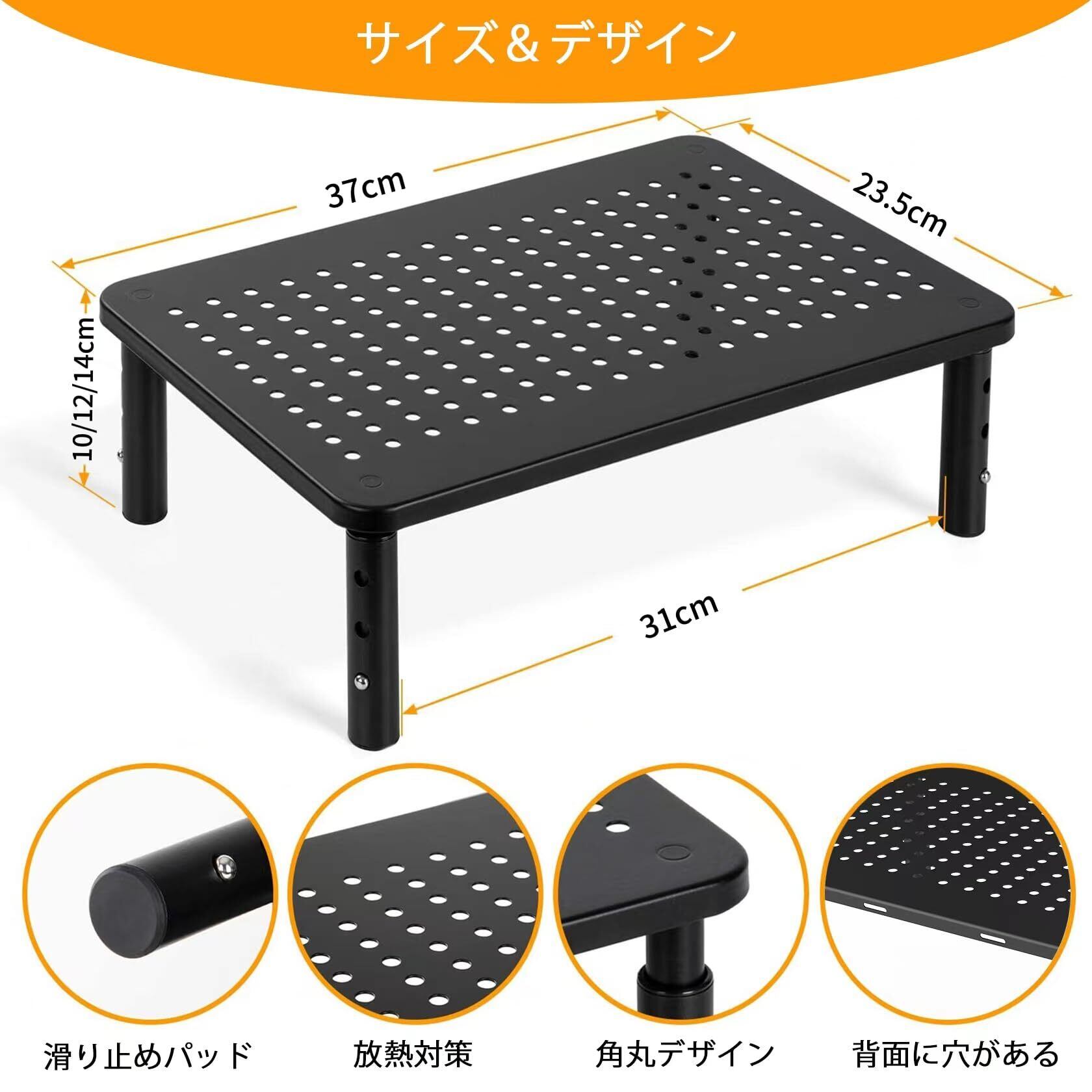 METIYA モニター台 机上台 ディスプレイ台 金属 PC モニタースタンド 高さ調整可能 幅370mm 耐荷重20kg 頑丈 滑り止め ノートパソコンスタンド (2セット)