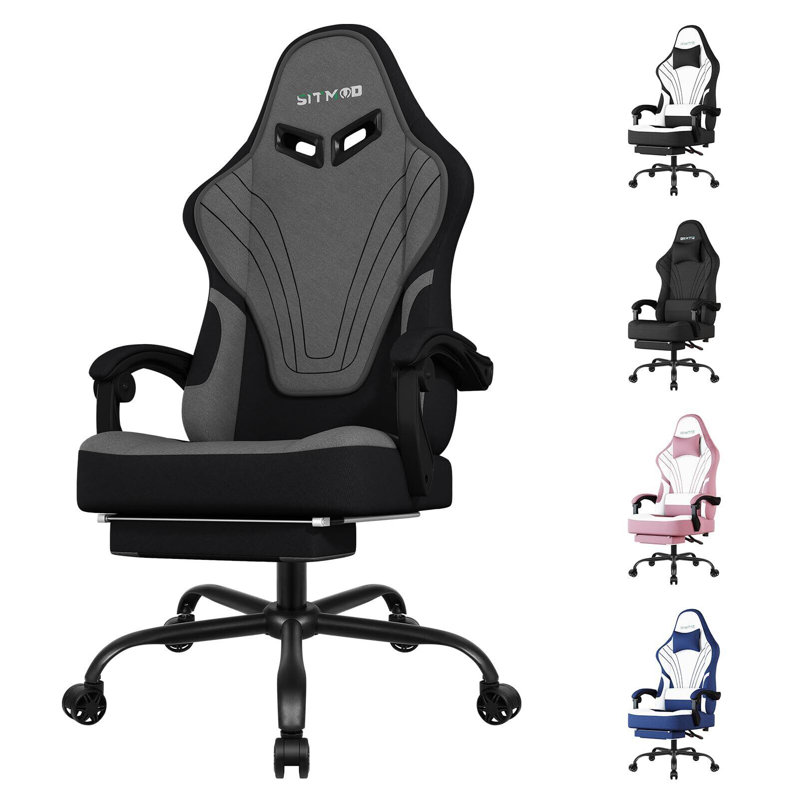 【新着商品】ゲーミングチェア 人間工学に基づいた設計 ヘッドレスト・ランバーサポート付きオフィスチェア 高さ調節可能 通気性ファブリック 360度回転椅子 リクライニング機能付きPCチェア・デスクチェア オフィスチェア, グレー