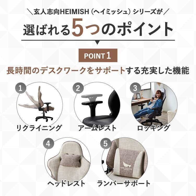 【シンプルな素材で部屋にマッチ】シンプルで柔らかい印象のデザインの為どんな部屋にもマッチします。蒸れにくく丈夫なファブリック生地を採用しているので長期間使っていても蒸れにくく快適!より作業に集中できます。
