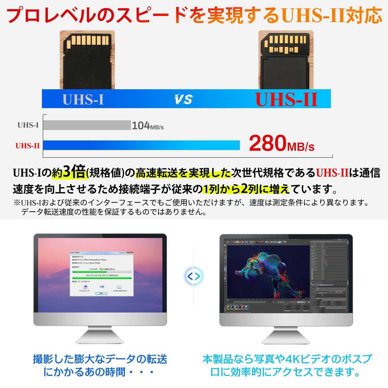 ■【高い互換性と信頼性!】UHS-II規格に対応しており、さまざまなデバイスでの使用が簡単です。デジタルカメラやビデオカメラなど、多くの機器との互換性があり、安心して使用できます。また、国内正規品ならではのサポートも魅力です。