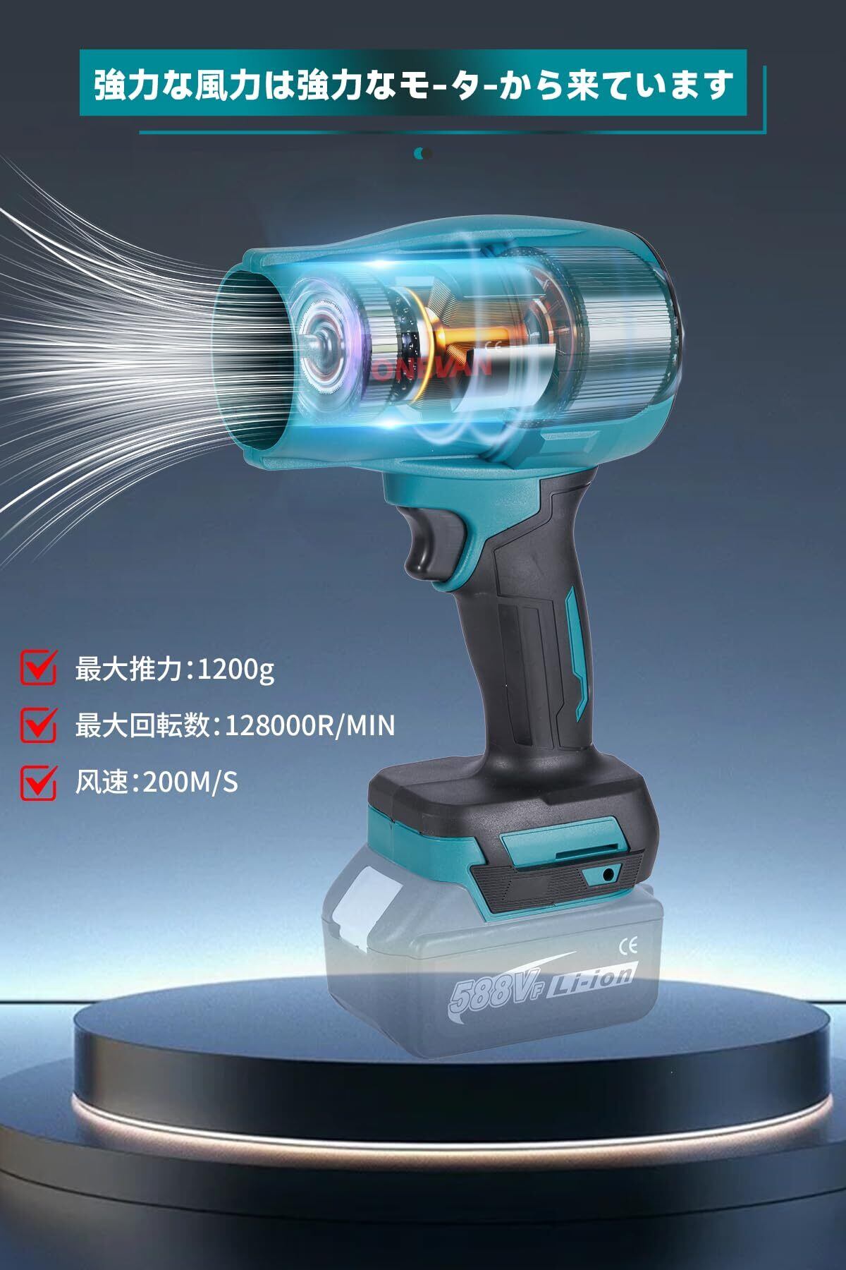 ONEVAN ブロワー エアダスター 電気エアダスター 60m/s 超強力 120000rpm ジェットドライブロワー ターボジェットファン ブロワー ジェットドライブロワー 高速回転 高耐損性 高温耐性 長持ち コードレス 機械掃除/キーボード/エアコン/洗車/キャンプ/アウトドア (青い+本体+バッテリーなし)