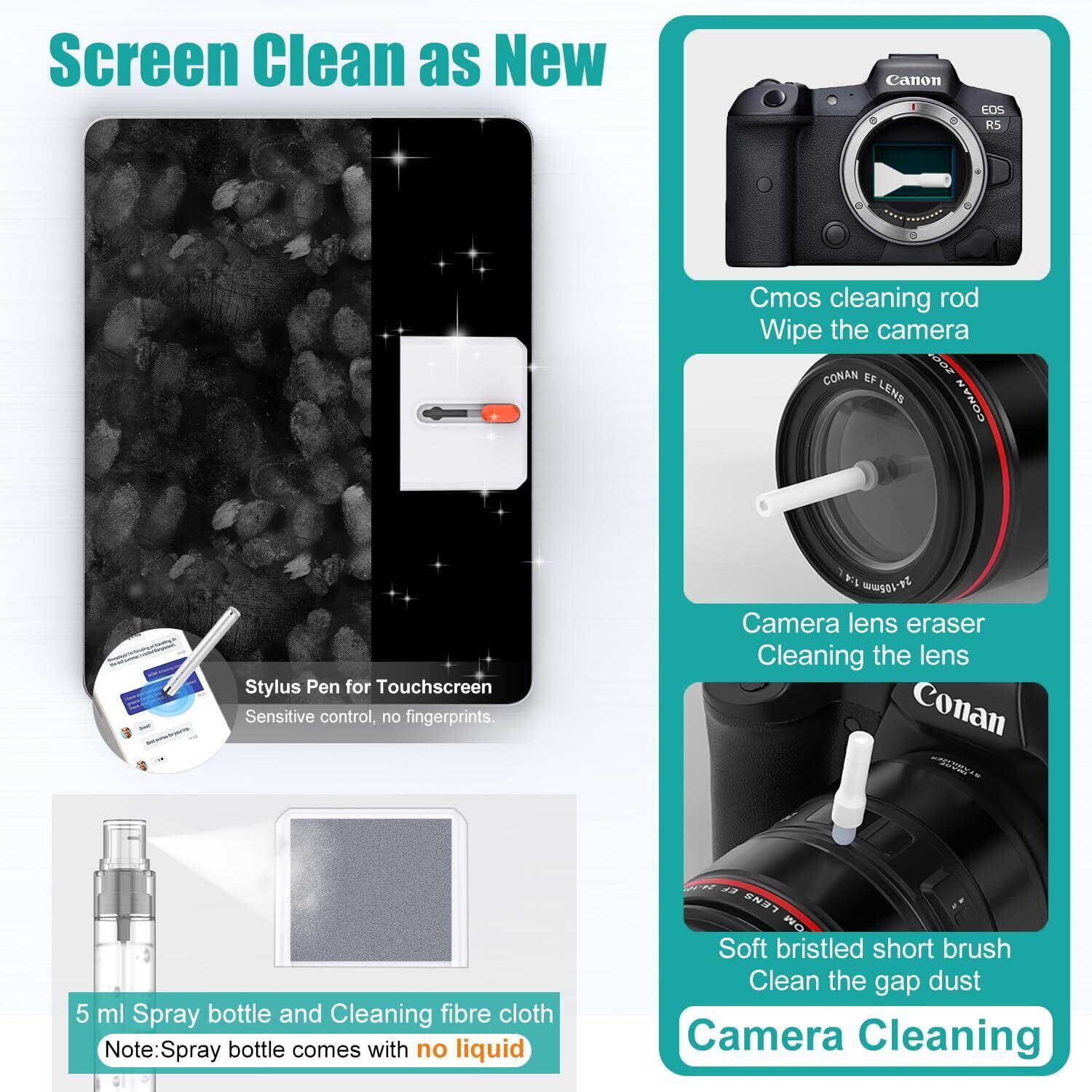 多目的クリーナーキット: 多機能掃除キットは多様なアクセサリーが付属しています。スマホ、イヤホン、スクリーン、キーボード、パソコン、カメラのクリーニングが可能です。すべての小さなツールを収納する本体箱は、SDカードやSIMカードを収納することもできる。小型電子機器のさまざまなクリーニングニーズに簡単に対応できます。