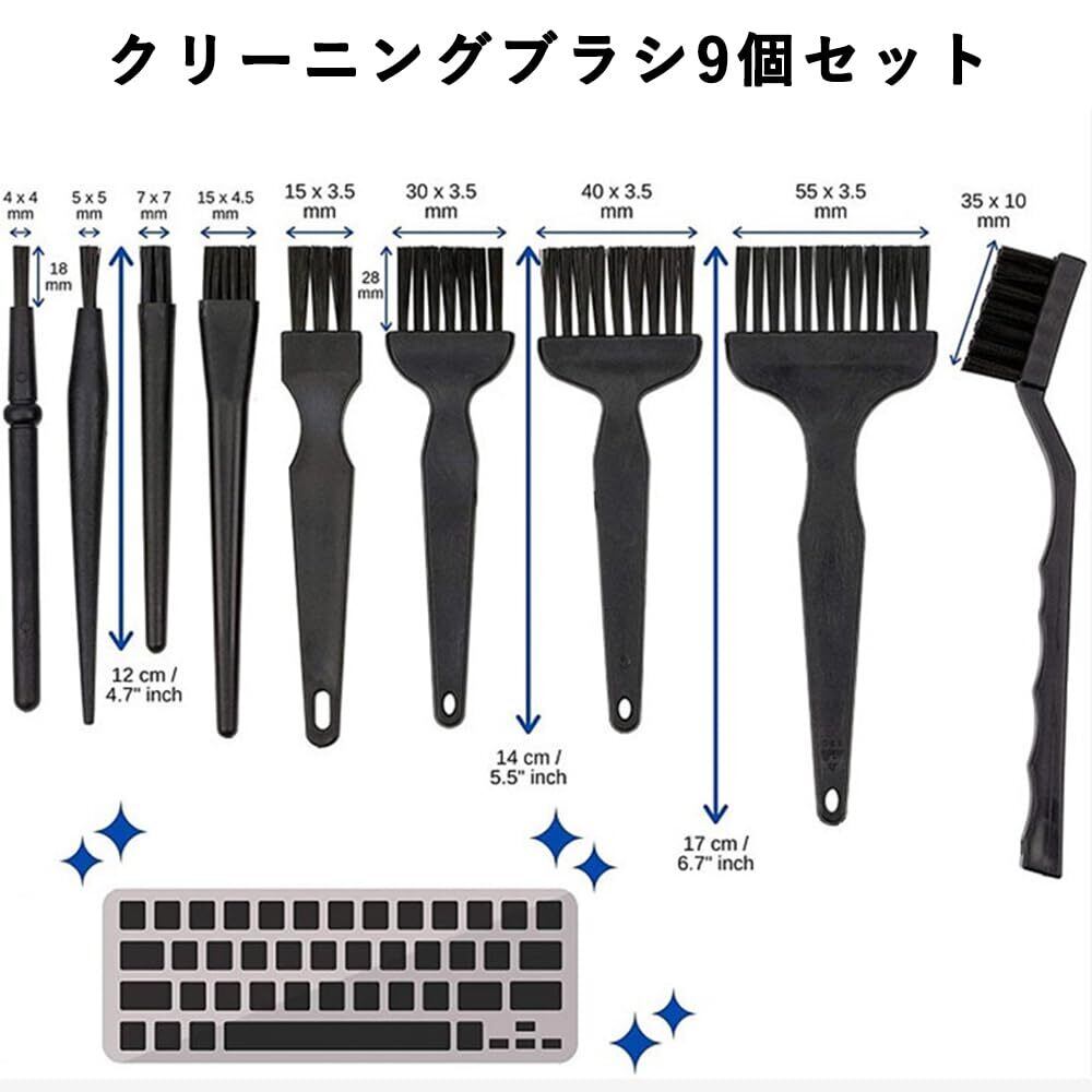 ■【9点セットで広がる使用の幅!】このセットには、異なるサイズと形状のブラシが9本含まれており、USBポートやファン、隙間などの細かいところもしっかりと掃除できます。いろいろな場面で役立つこと間違いなしです!