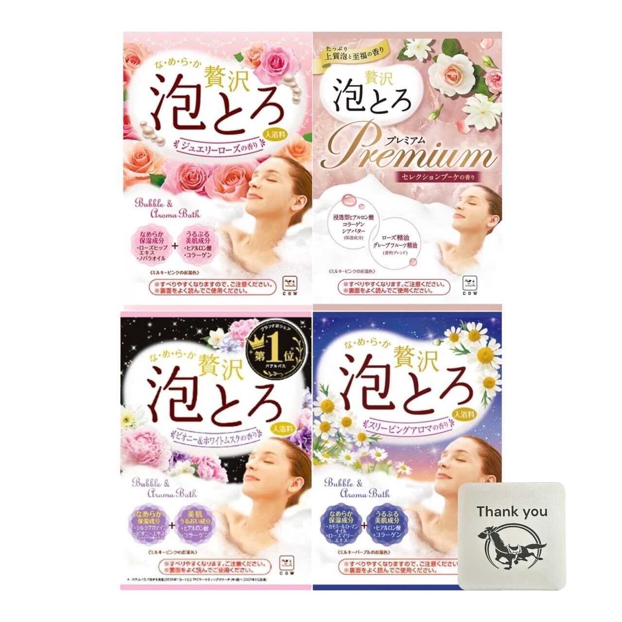 【数量限定】牛乳石鹸 お湯物語 入浴剤 4種アソート 贅沢 泡とろ入浴料 ジュエリーローズの香り スリーピングアロマの香り ピオニー&ホワイトムスクの香り プレミアムセレクションブーケの香り 各種1包セット + Kunutonnオリジナルロゴ入りおまけ付 | SmartLiving+