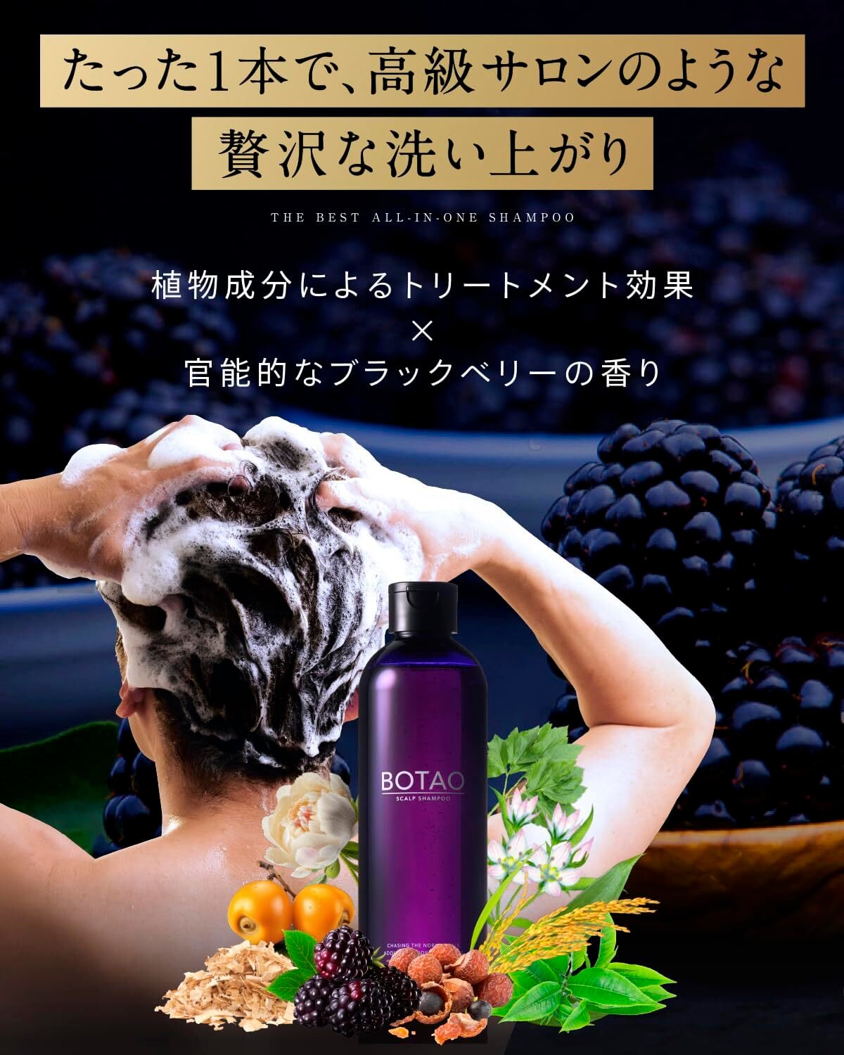 BOTAO(ボタオ) メンズ ボタニカル 潤うオールインワン 濃密泡 スカルプシャンプー アミノ酸 300ml ブラックベリーの香り