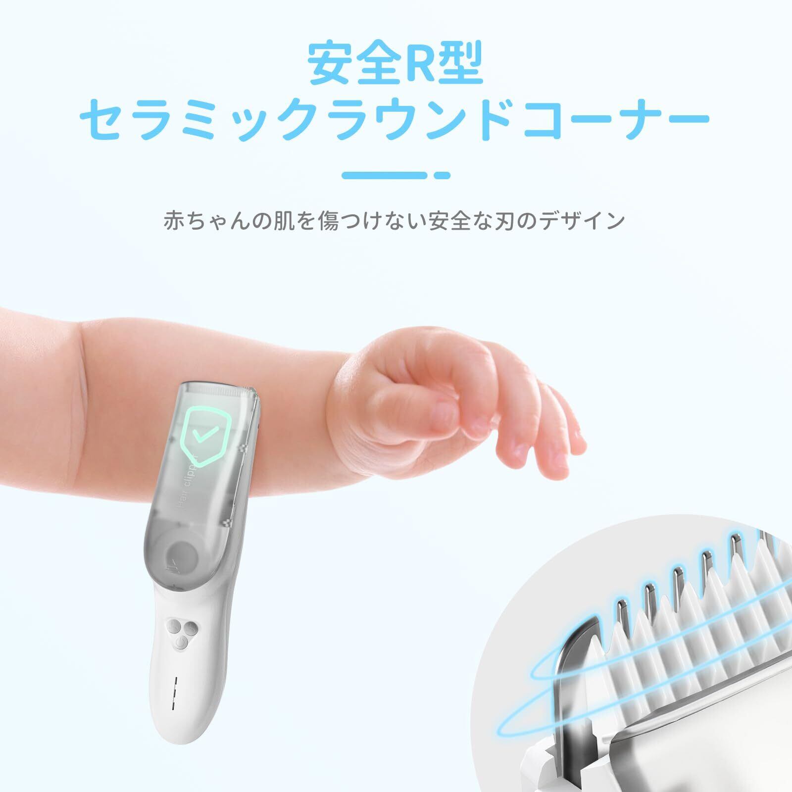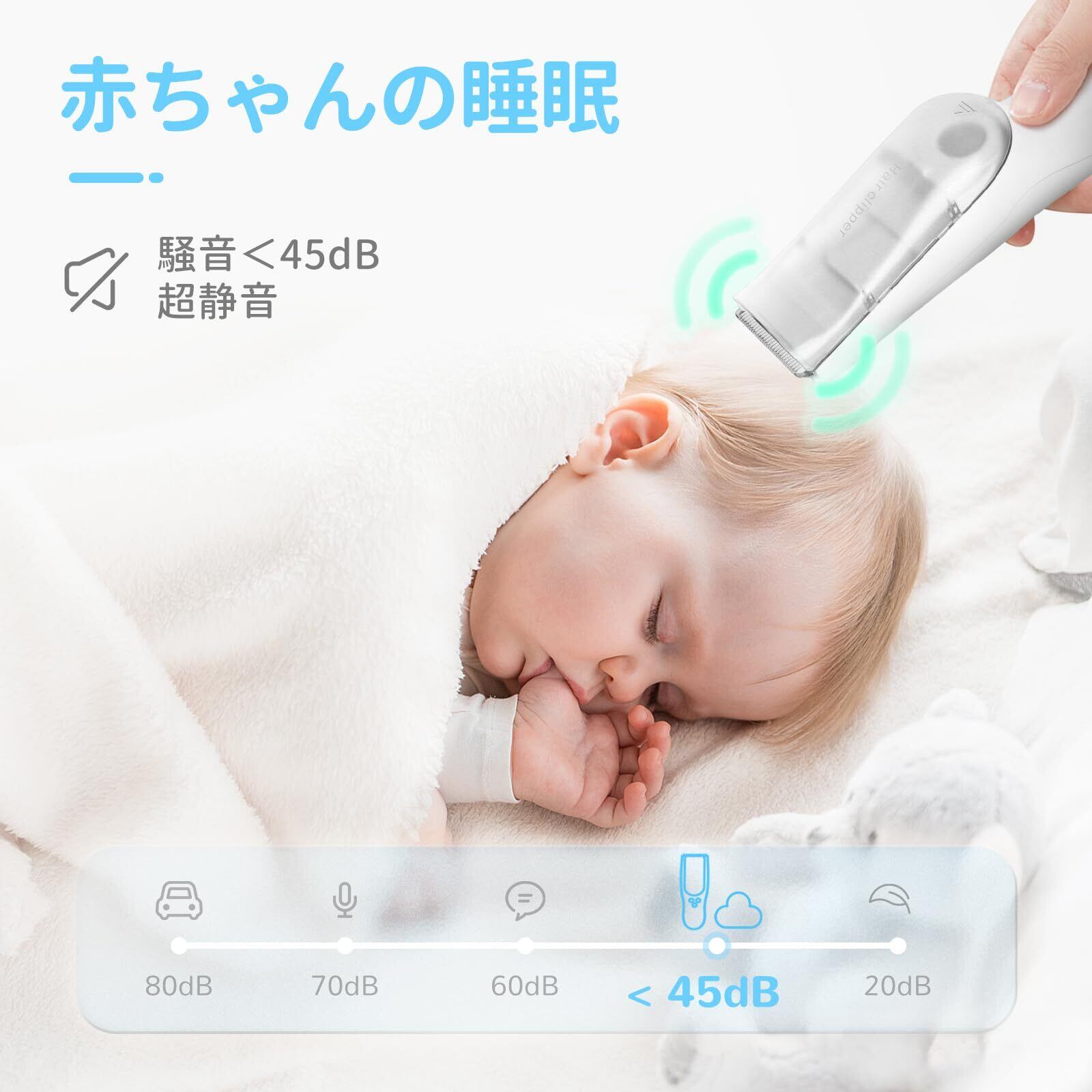 【超静音設計】赤ちゃんヘアクリッパーの動作音は45dBより低く、この超静音機能は、トリミング中赤ちゃんがリラックスした気分になり、もう髪を切ることを恐れることはありません。寝ている赤ちゃんを起こす心配もありません。