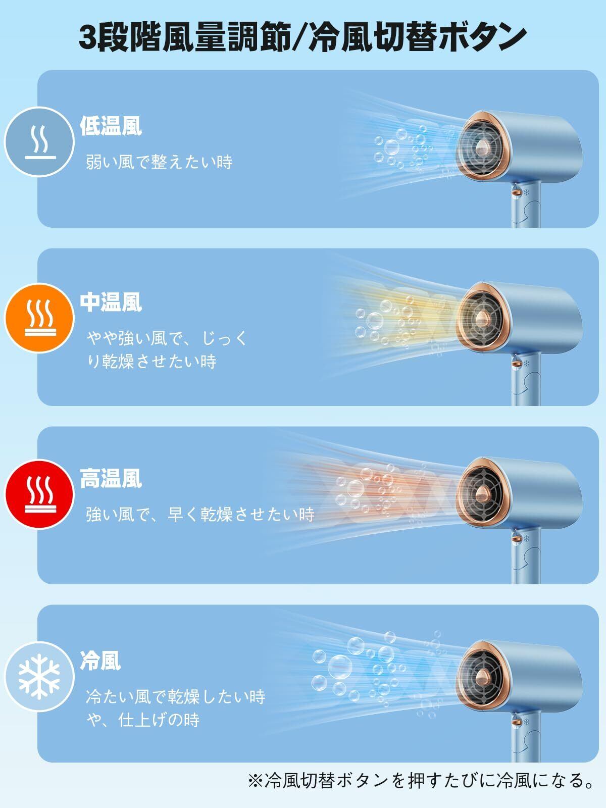 ドライヤー 2025進化モデル・収納ホルダー付属 ヘアドライヤー 速乾 大風量 高速モーター 髪質改善 高濃度マイナスイオン 速乾ドライヤー 3段階温度調節 冷風/熱風 静音 ノズル付き ヘアサロン 家庭用/出張用/旅行用 PSE認証済み ブルー