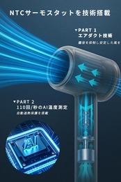 【細部が安全なNISSYOドライヤーを成就】ドライヤーは過熱自動断電保護機能と自動クリーニング機能を搭載し。NTC温度制御装置を搭載、毎秒110回の温度測定とコントロールにより、髪表面の水分を素早く取り去りながらも、過度な熱によるダメージを防ぎます。ハンドル式操作で、ワンタッチで自動クリーニングモードを起動でき、ドライヤー内部へのゴミや髪の巻き込みを防止。使いやすく、収納も簡単です。