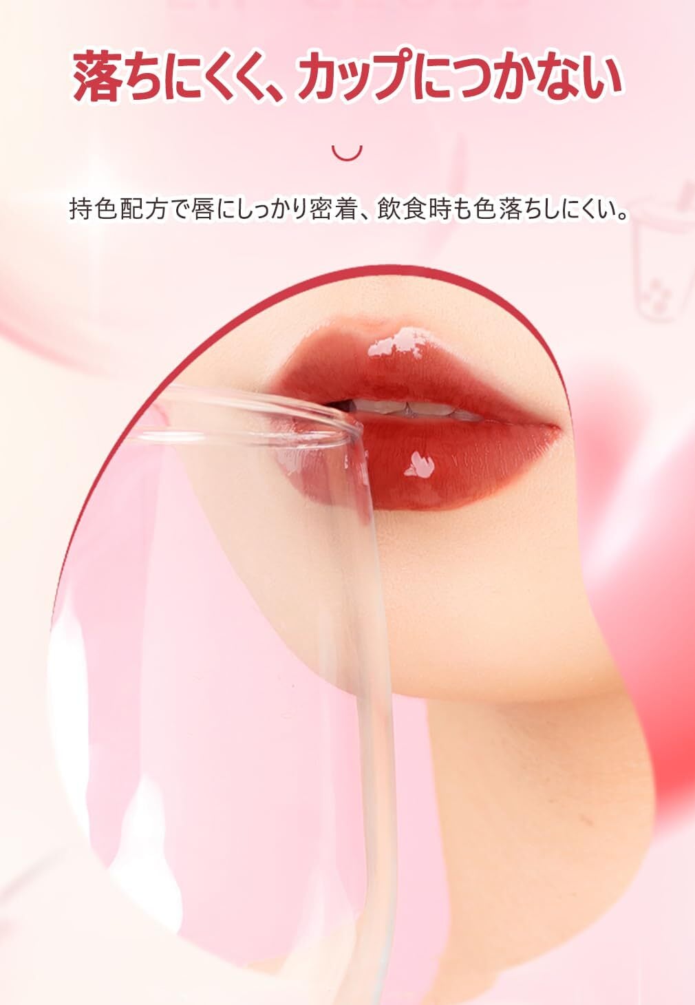 【落ちにくく、カップにつかない】持色配方で唇にしっかり密着、飲食時も色落ちしにくい。マスク着用時も汚れにくく、尴尬を回避。
