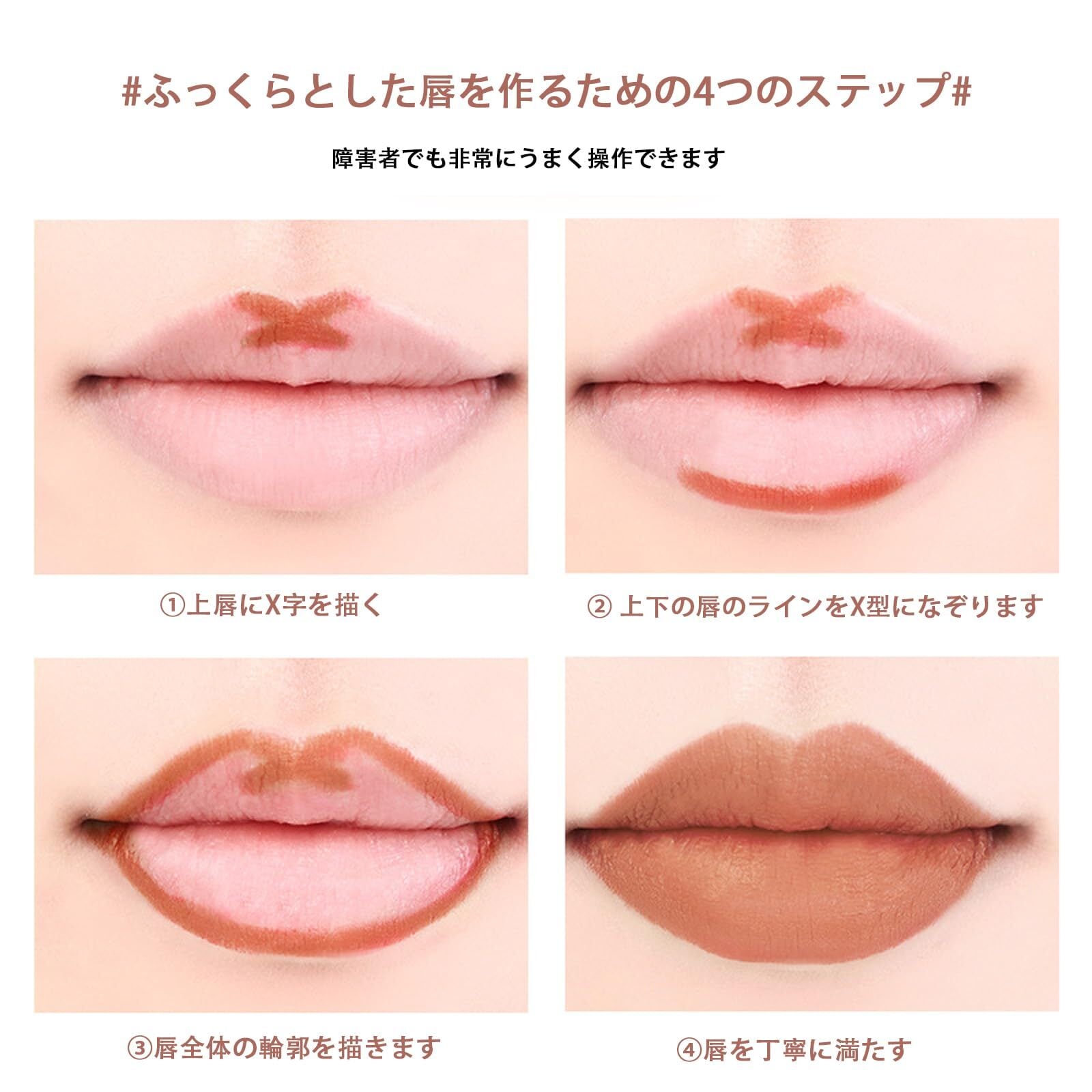【シルキーような滑らかなテクスチャー】この棒紅は高品質な成分で作られており、唇にピタッと密着する滑らかさです。繊細に唇を描くことができ、メイクアップを立体的に演出します。