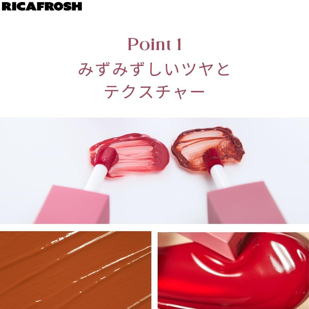 【ティント処方で着けたての美しさが持続】 みずみずしいツヤとテクスチャーで1度塗りと重ね塗りの2通りの質感が楽しめるリキッドルージュ