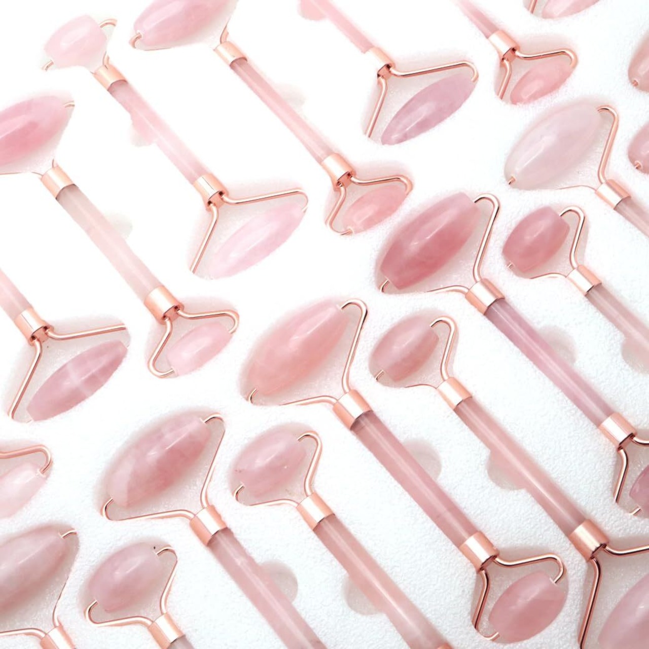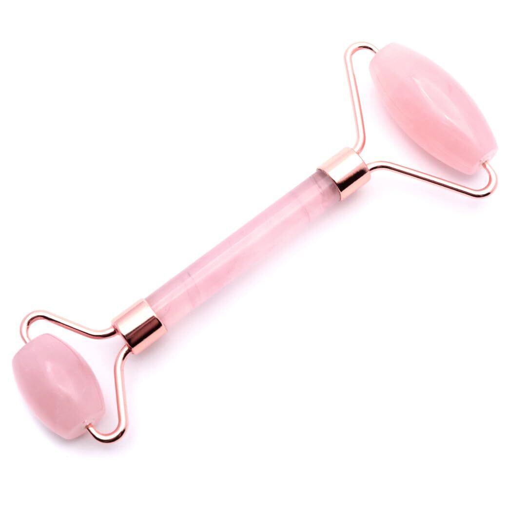 [GOLD STONE] ローズクォーツ フェイスローラー ダブルヘッド マッサージ 天然石 パワーストーン ひんやり ころころ