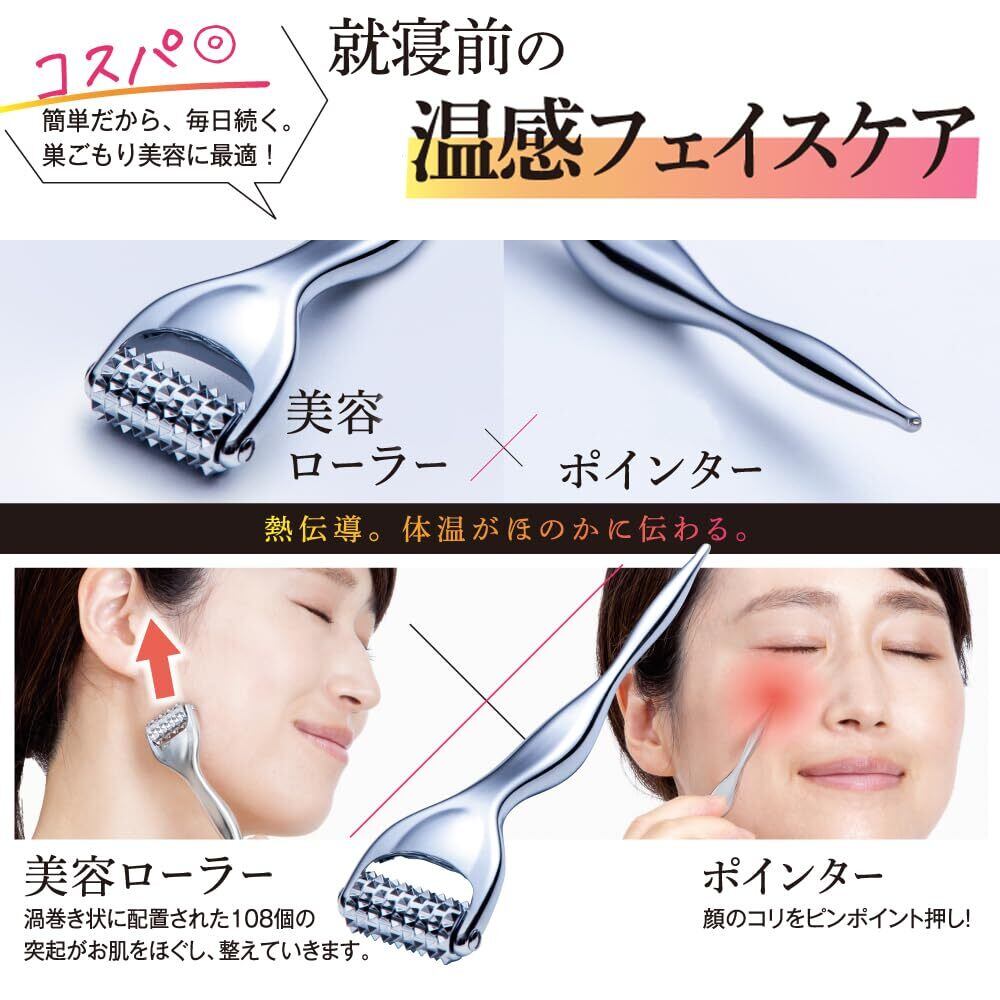温感フェイスケア。熱伝導で体温がほのかに伝わるフェイスローラー。