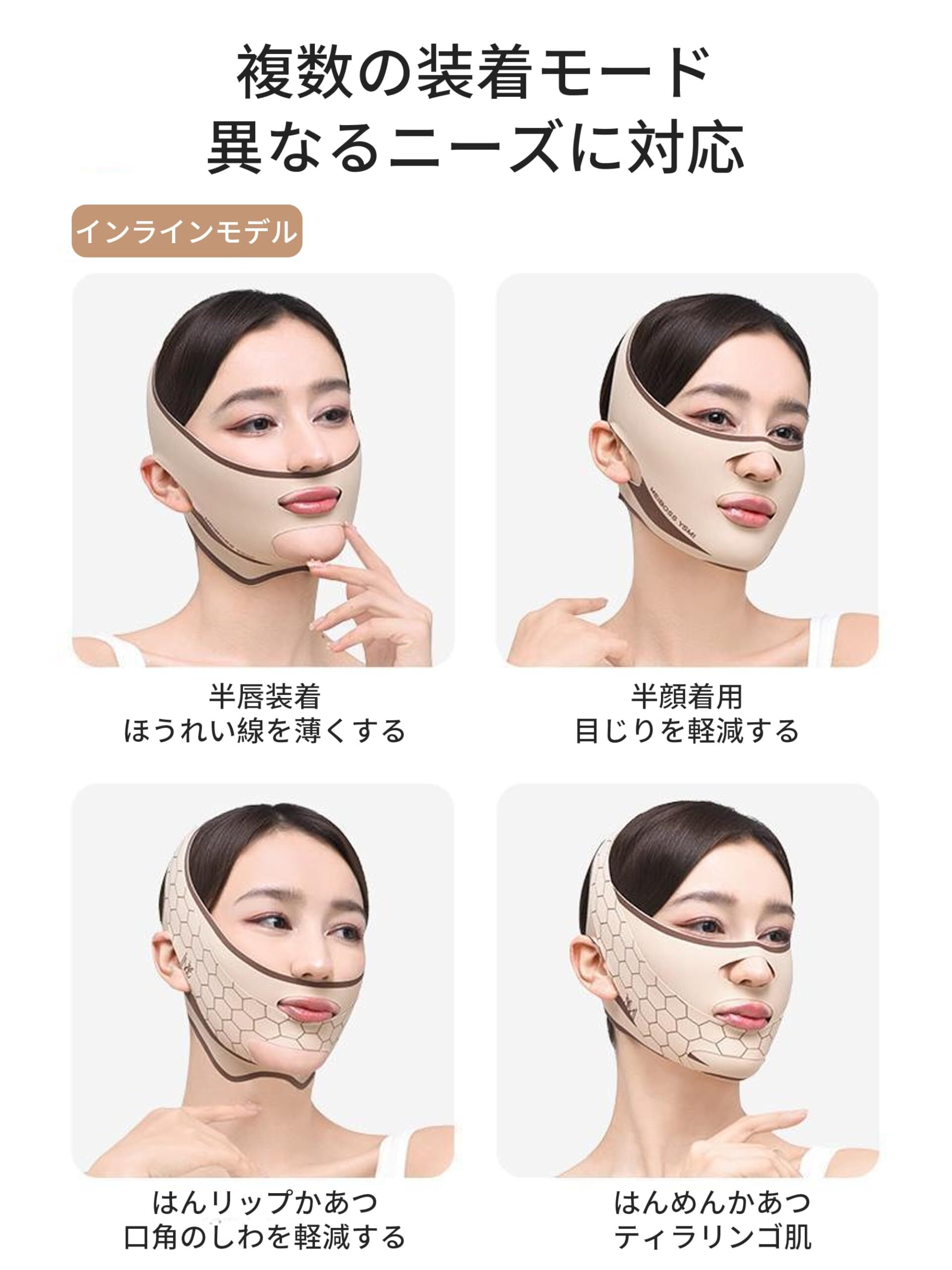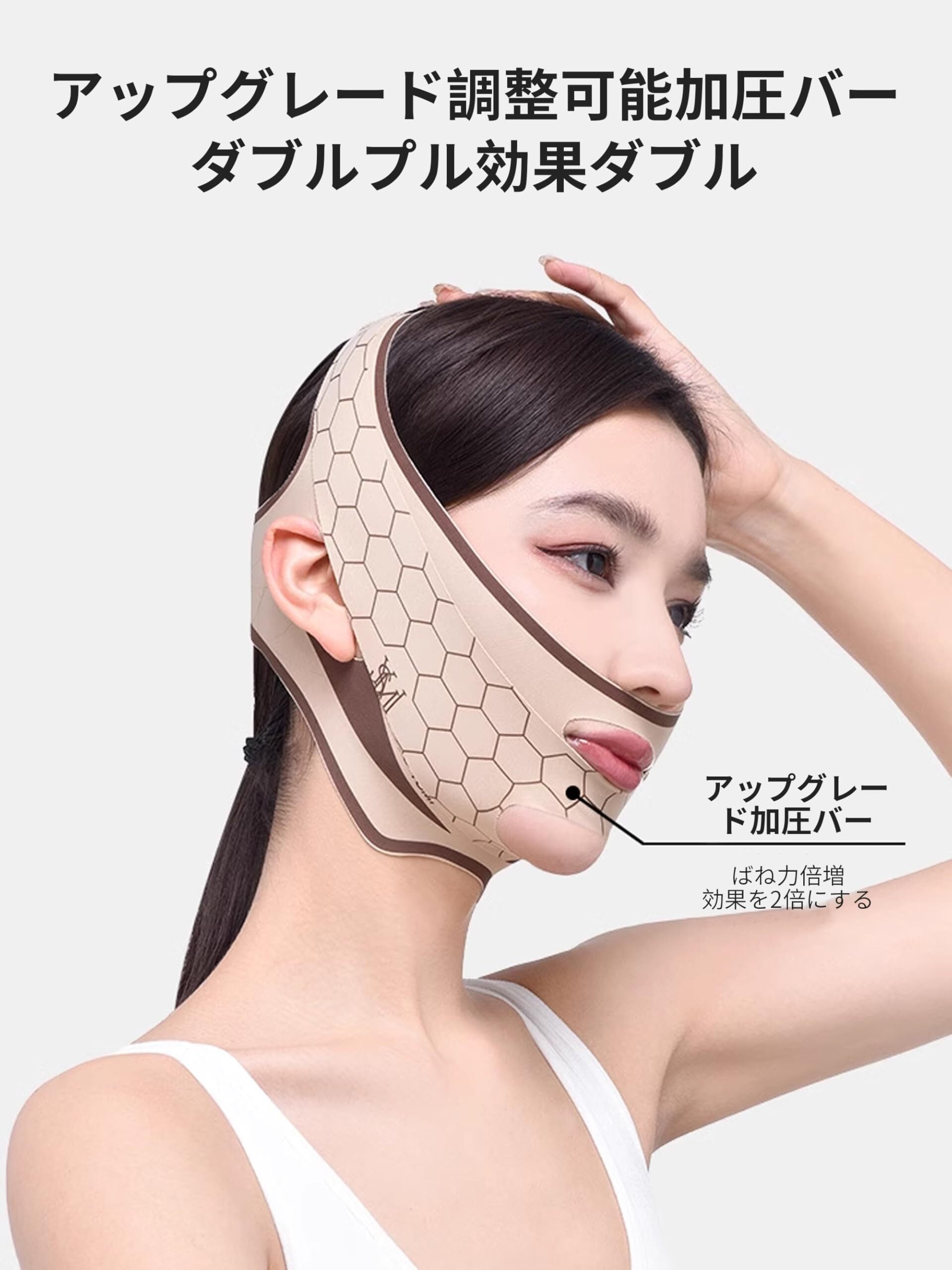 【二重加圧設計】:新たに遠赤外線ヒアルロン酸マスクをアップグレードし、着用中、顔の引き上げ効果を強化するだけでなく、スキンケア用品の吸収速度と肌の潤い度の側辺に弾力帯を増加させ、自分で引っ張り力を調節して頬に密着させることができる。