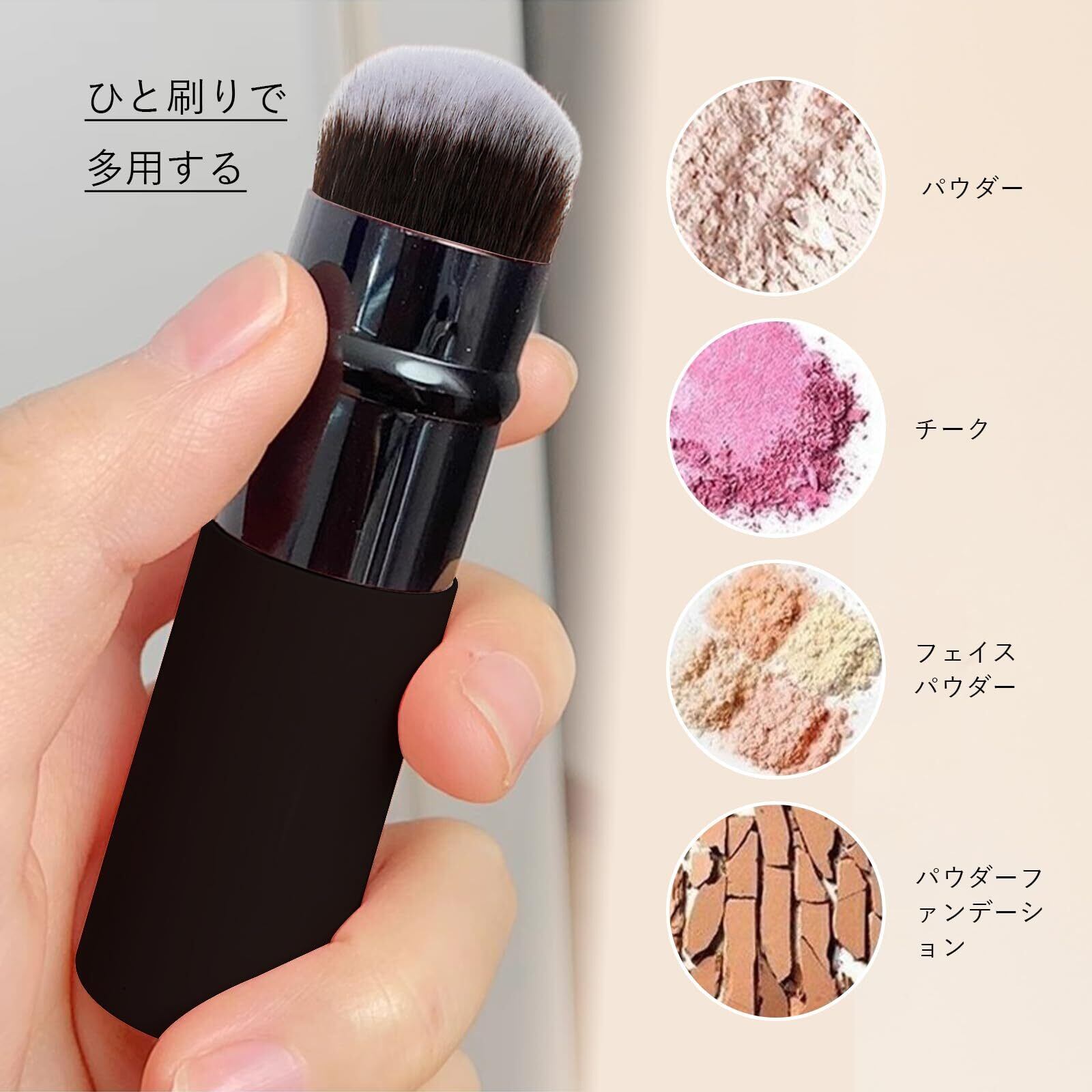 YFFSFDC 化粧ブラシ パウダーブラシ スケーラブル設計 持ち運び便利 チークブ フェイスパウダー 化粧用 (ブラック)