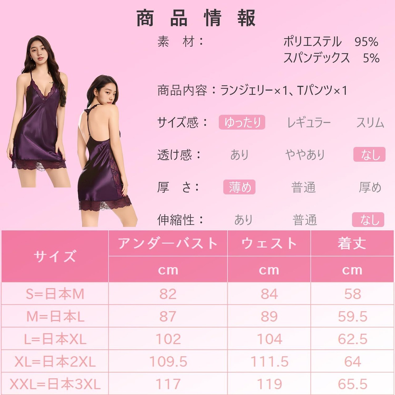 【柔らかい生地】ポリエステル95%、スパンデックス5%、柔らかい高品質素材を使用し、透け感がなく、スリープウェアとしてもおすすめできるランジェリーです。