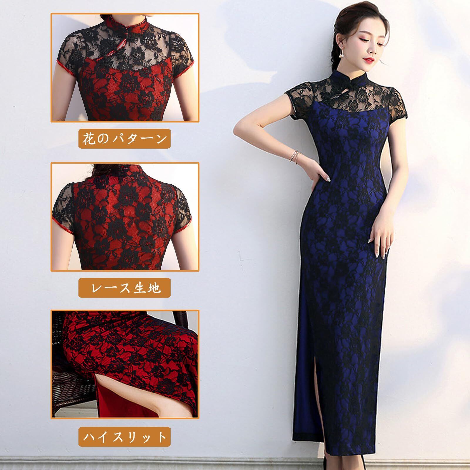 [Zleufirty] チャイナ服 レディース ロング丈 セクシーな ャイナドレス レース チャイナドレス スリット深め チャイナ服 ハロウィン チャイナワンピース あなたのセクシーな姿を強調します 美脚