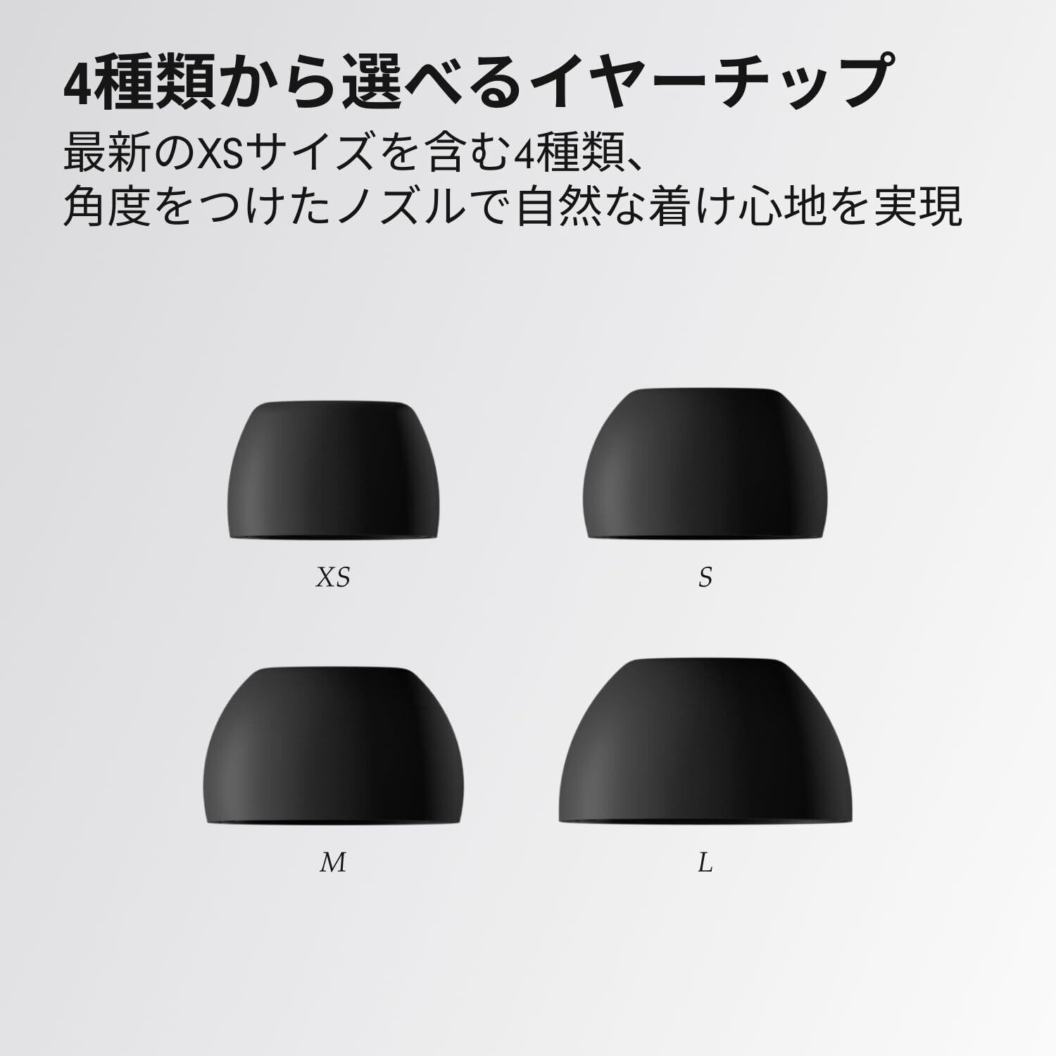 より多くの耳にフィットする4種類のイヤーチップ(XS、S、M、L)