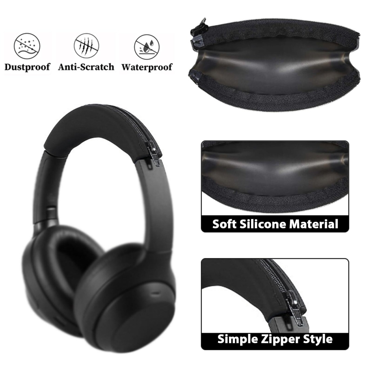 Adhiper シリコン スウェットヘッドバンドカバー Sony WH-1000XM4 WH-CH720N WH-XB910N ULT WEAR用 洗濯可能 ファスナー付き 防塵 ヘッドバンドカバープロテクター Soundcore Q45 Q30 Q20用 (ブラック)