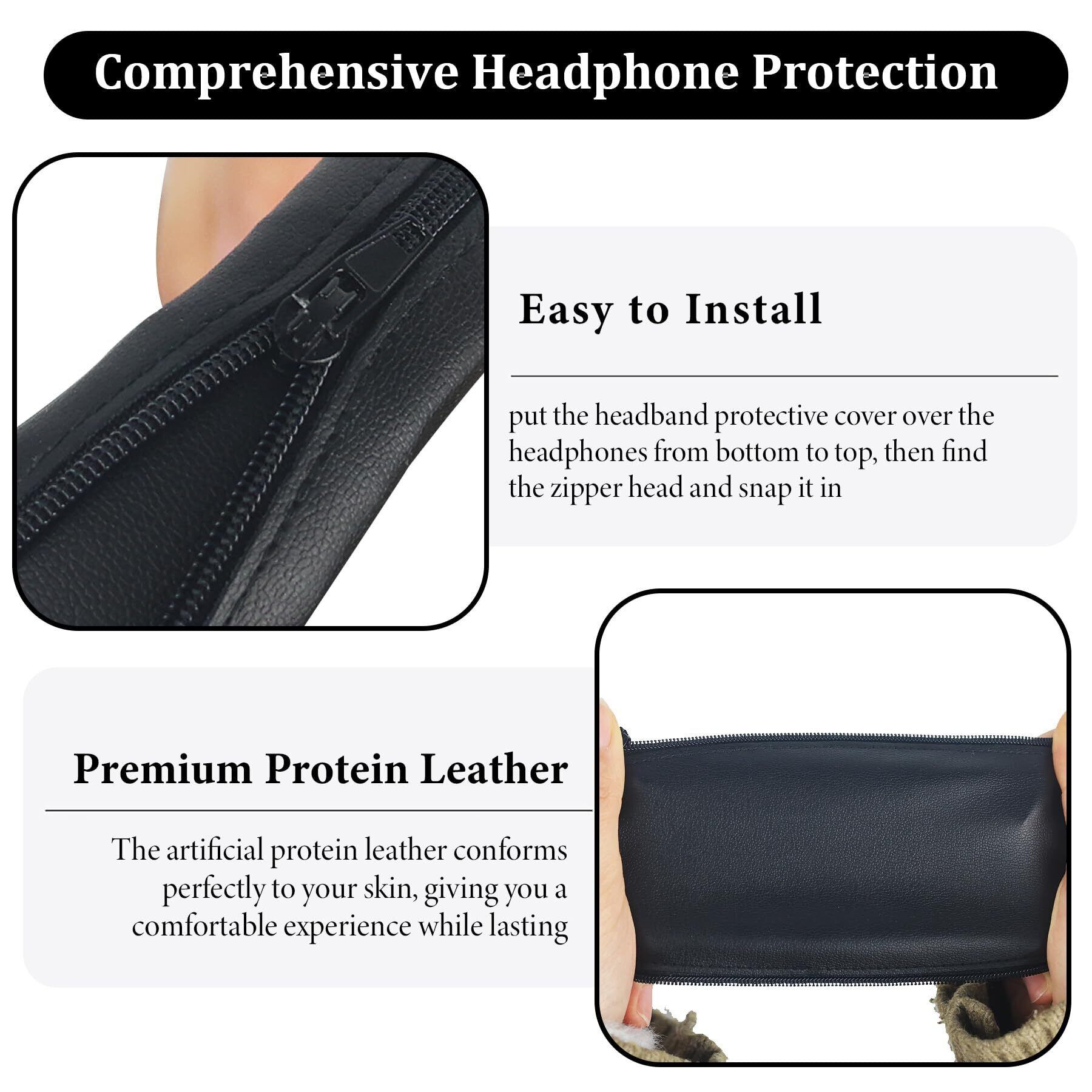 Adhiper ヘッドバンドカバー Soundcore Life Q20 Q30 Q35 Q45用 プロテインレザー ファスナー付きヘッドバンドプロテクター Sony WH-1000XM4, WH-1000XM3, WH-XB910N, WH-XB900N ヘッドフォン用 修理パーツ (ブラック)