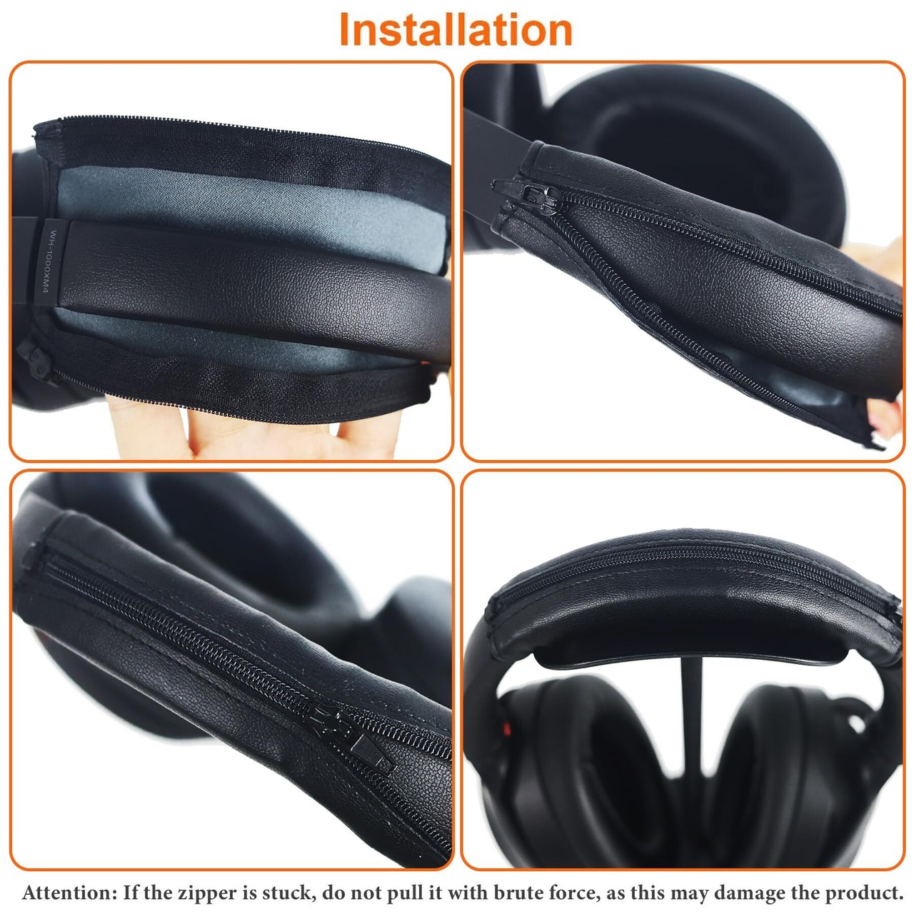 【取り付け簡単】まず、ヘッドバンド保護カバーをヘッドホンの上から下から上にかぶせ、次にジッパーヘッドを見つけてカチッとはめ込み、最後にチェーンの位置を合わせてジッパーをゆっくりと引きます。ファスナーが引っかかった場合は無理に引っ張らないでください、製品が破損する恐れがあります