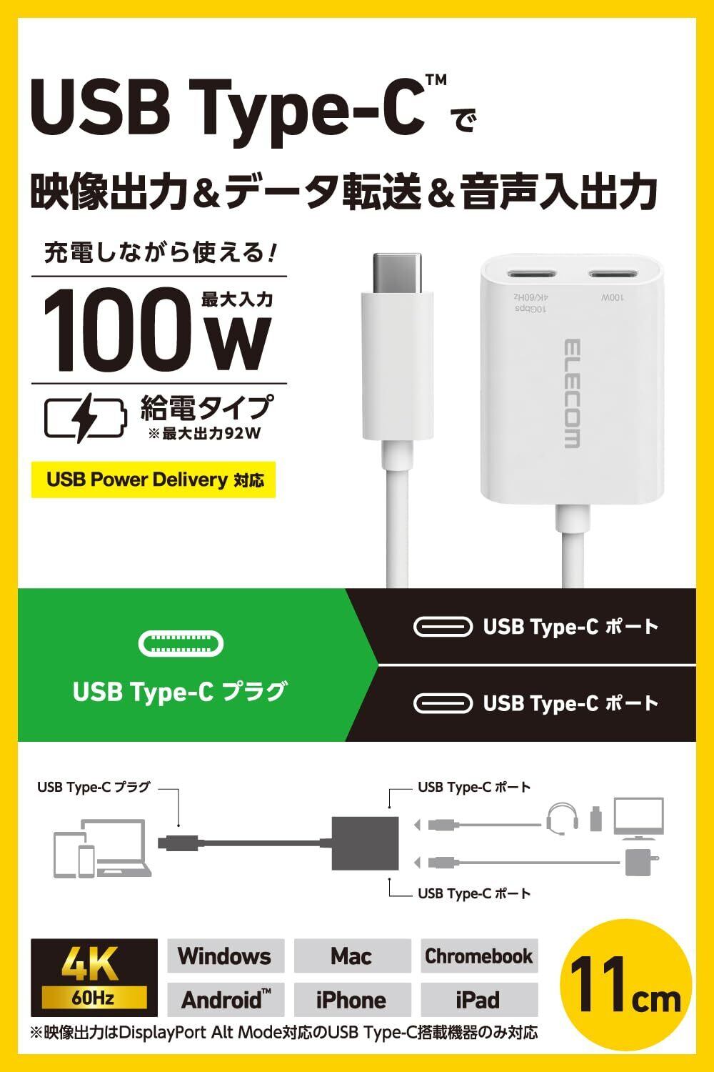 エレコム エレコム usb c 変換アダプタ イヤホン オーディオ変換 給電ポート付き 2in1 100W [充電しながらイヤホンが使える] USB PD対応 4K/60Hz Type-C to Type-C ホワイト ECAD-C2CPD100WH
