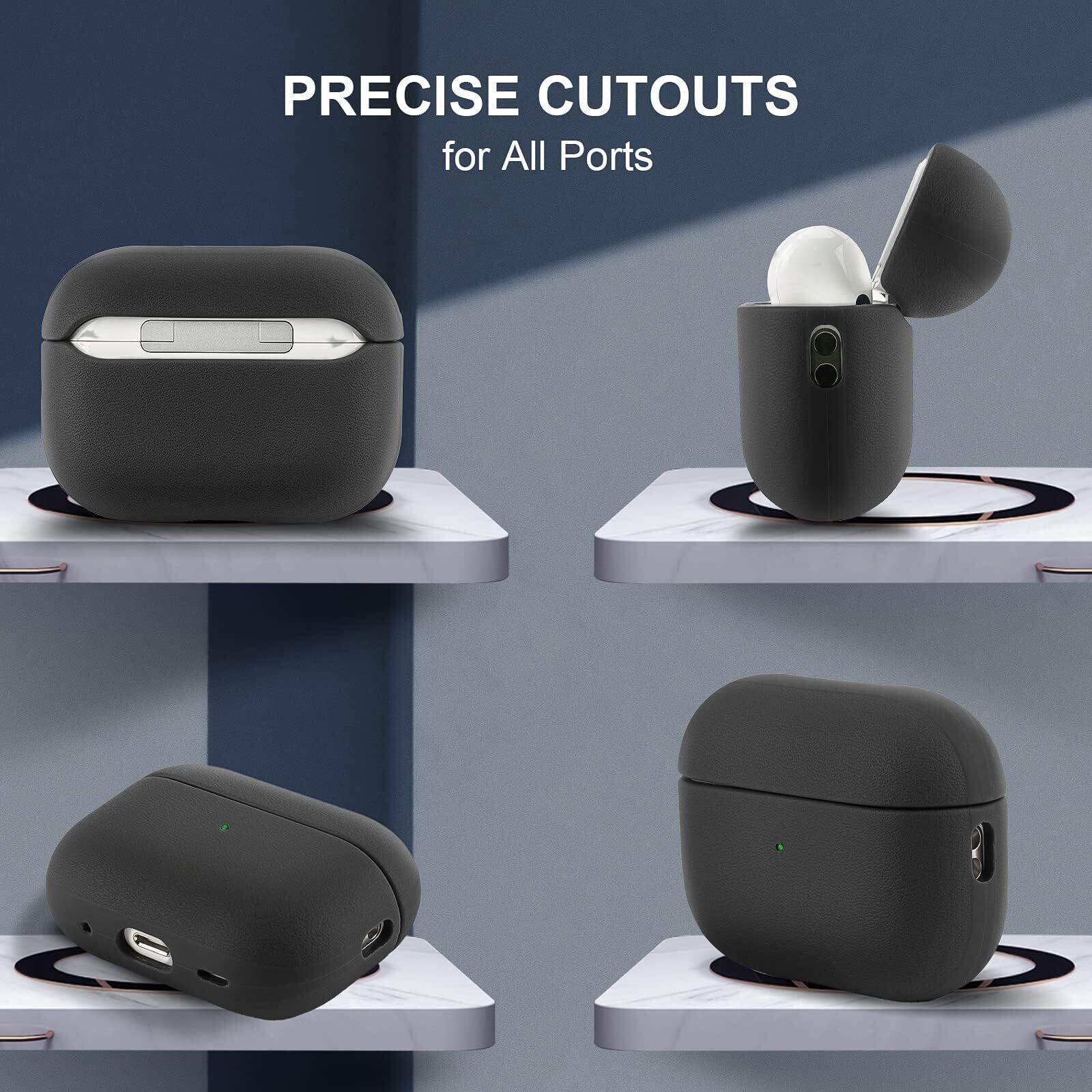 Teyomi for AirPods Pro 3 ケース、for Apple Airpods Pro 3用保護ケース、ハンドストラップ付き、レザータッチデザイン for Airpods Pro 3カバー、TPU素材、ワイヤレス充電対応、完全保護、強力な落下耐性、耐衝撃性、ユニセックス (ブラック)