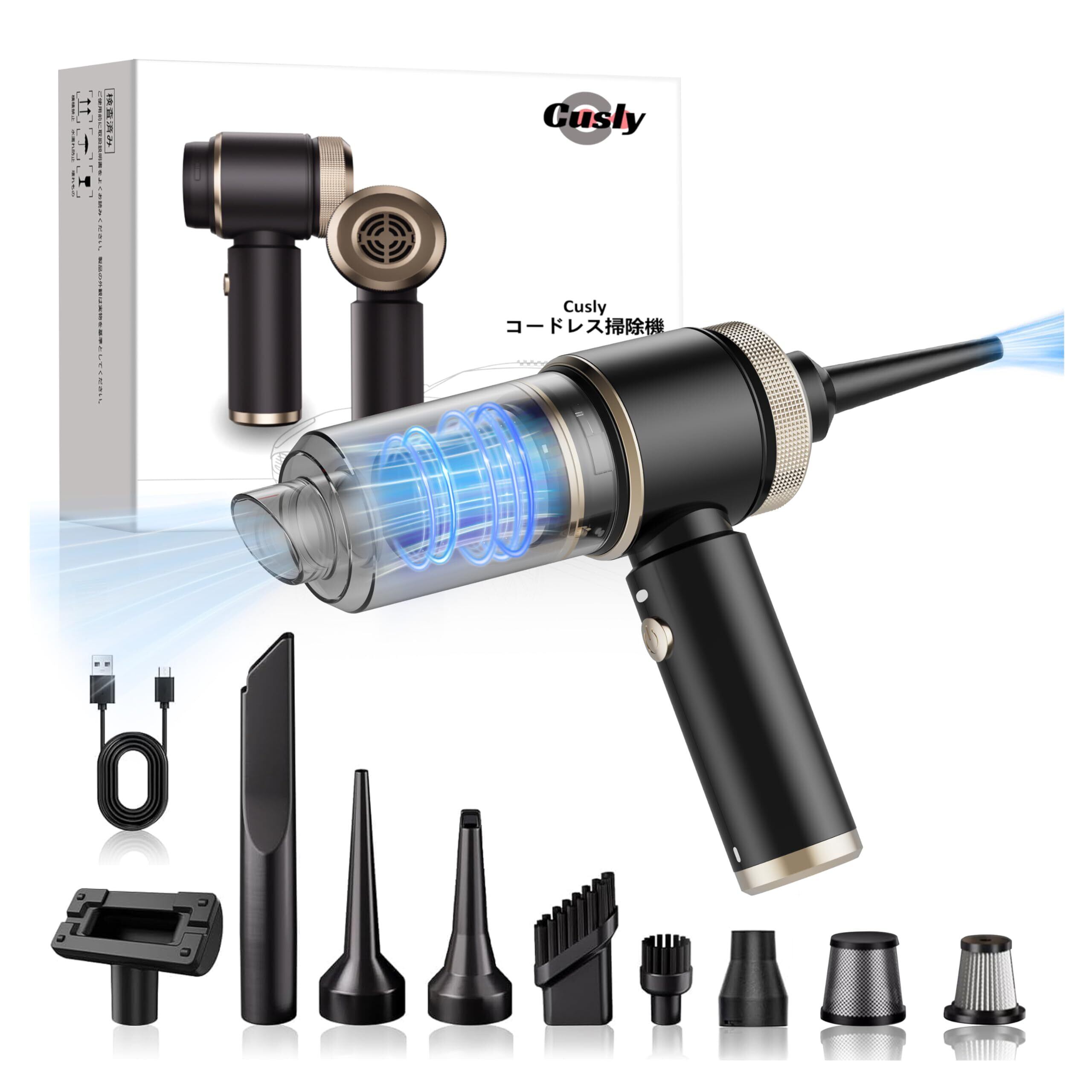 【2025新登場・多機能4in1モデル】 ハンディクリーナー Cusly 車用 掃除機 ハンディ掃除機 25000PA Type-C 充電式コードレス パワフルはんでい 乾湿両用 強力吸引力 小型クリーナー高速充电 低噪音对策 LEDライト搭載 車載ミニポータブル 軽量/業務用/キーボード掃除/車内清掃/家具/家庭用 多用途 日本語取扱説明書付き(ブラック)
