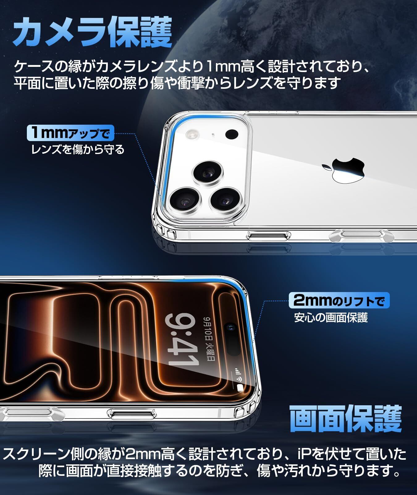 ■【クリアデザインで美しさを引き立てます!】高品質のポリカーボネートを使用し、黄ばみや指紋がつきにくいクリアな背面設計が特徴です。iPhone 17 Proの美しさをしっかりと引き立て、長期間使用してもその透明感を維持します✨。