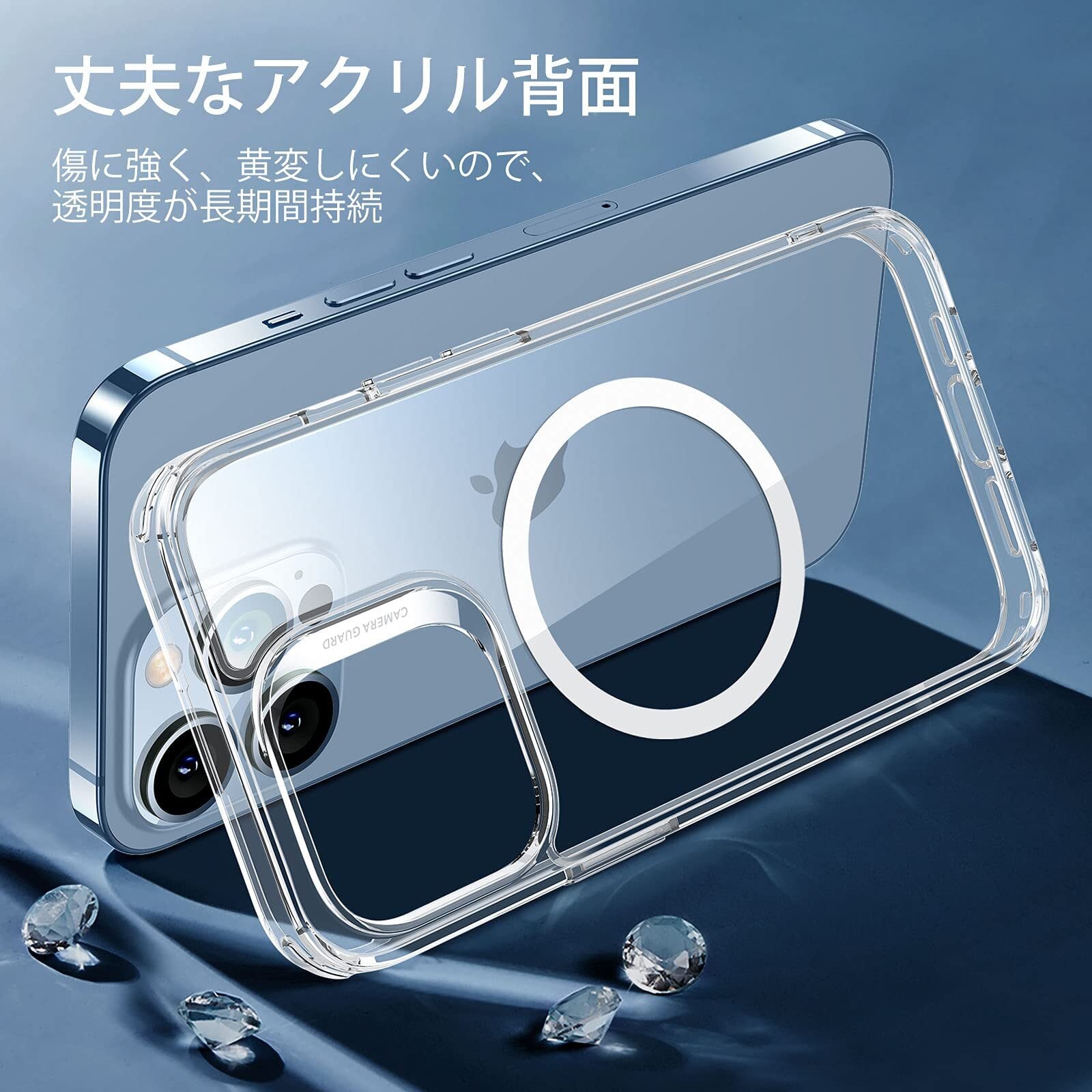 【高い透明度】傷に強いアクリル背面により、透明度が長期間持続し、iPhone 13 Proオリジナルのデザインを活かすことができます
