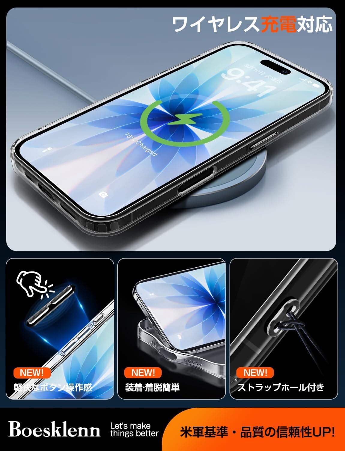 ■【ワイヤレス充電対応!】薄型でスリムなデザインながら、ワイヤレス充電がスムーズに行えます。充電の煩わしさをなくし、利便性を向上させるポイントです✨。