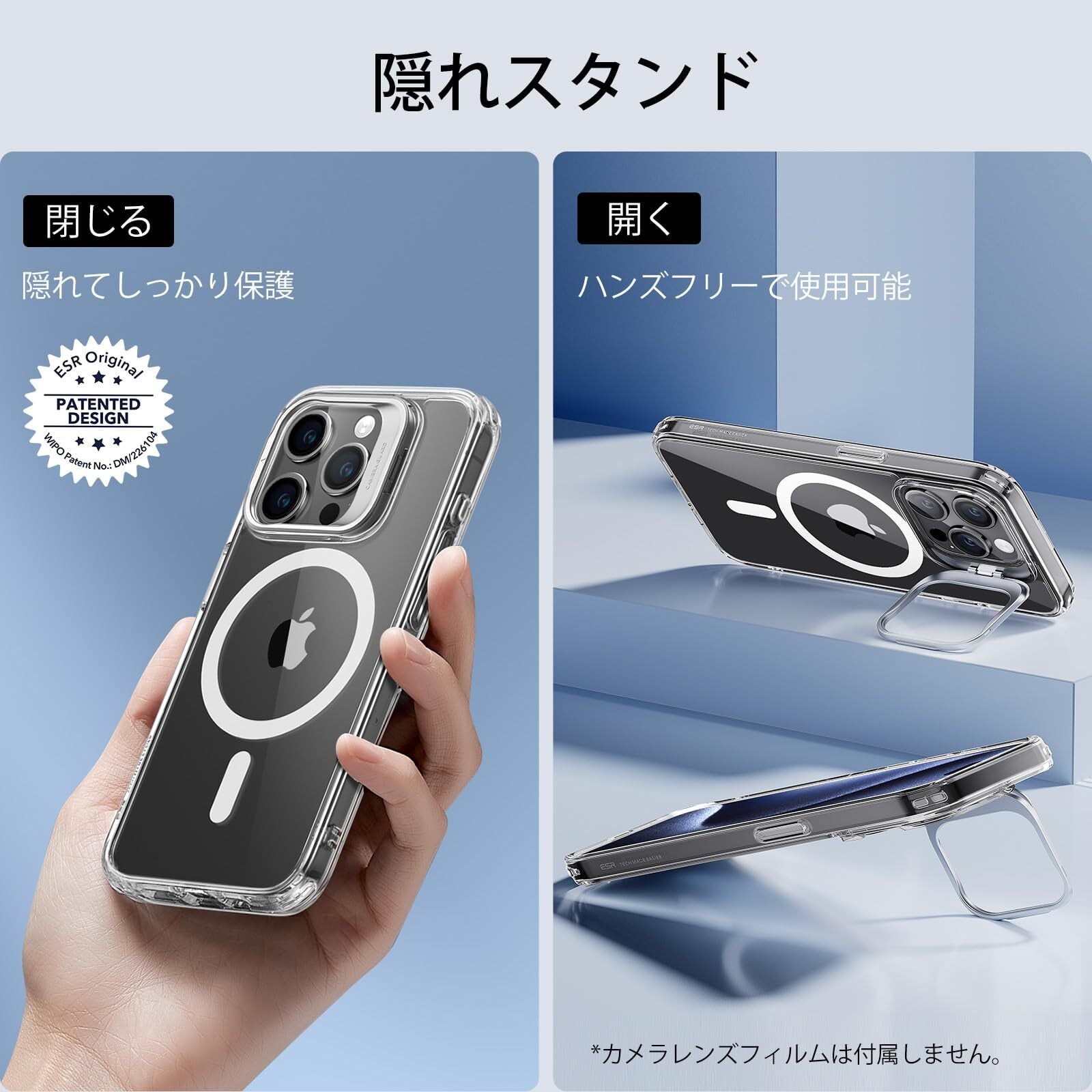【デザイン受賞シリーズ!】ESR いphone15Pro ケース iPhone15Pro ケース MagSafe対応 隠しスタンド 調整可能 ワイヤレス充電対応 米軍MIL規格 耐衝撃 傷防止 軽量 高い透明度 iPhone 15 Pro ケース 6.1 インチ Classicシリーズ クリア