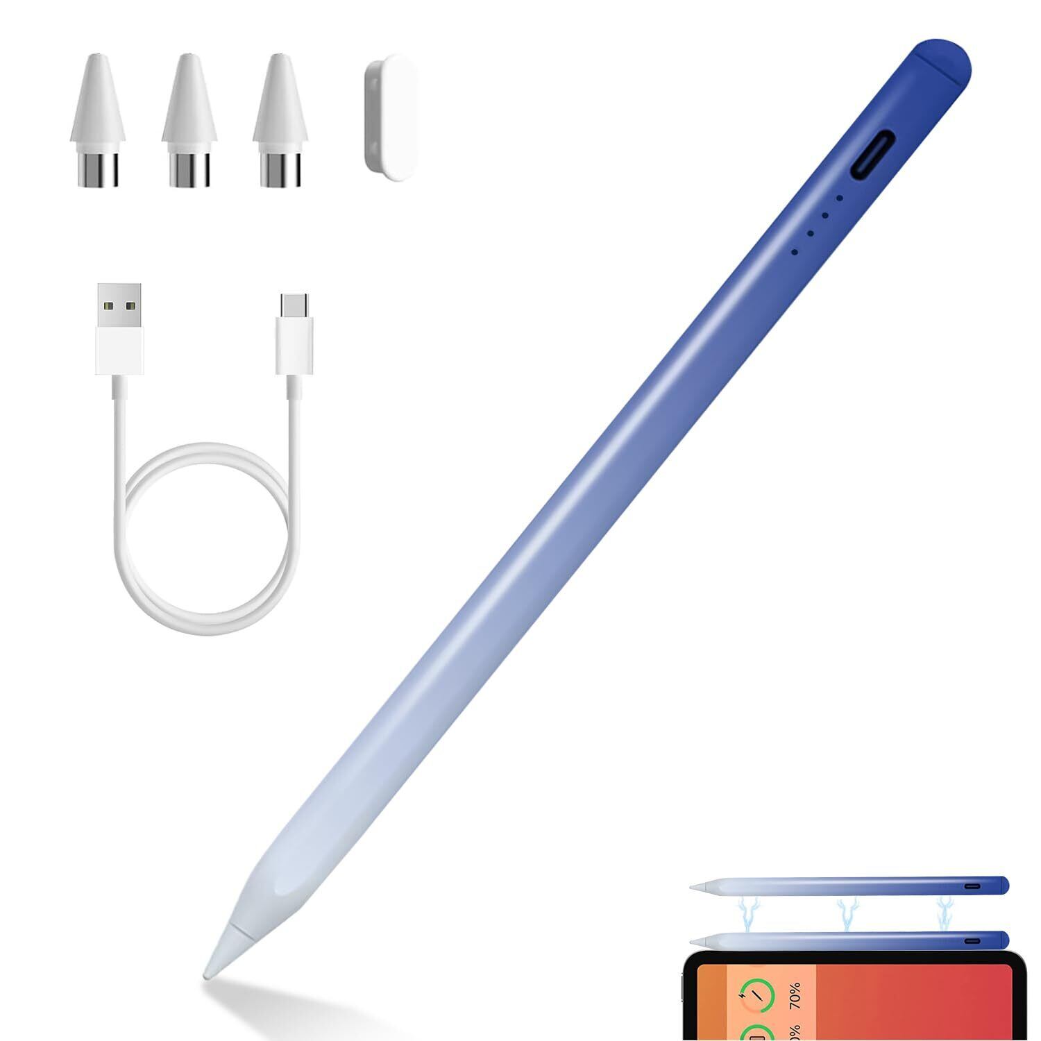 タッチペン 【全機種対応 急速充電】 2025業界新登場 スタイラスペン 超高精度 極細 stylus pencil 互換ペン 誤ON/OFF防止/電量表示/磁気吸着機能対応 軽量 耐摩 耐久 iPad/iPhone/Android/スマホ/タブレット用ペンシル USB充電式「日本語取扱説明書付き」(ブルー)