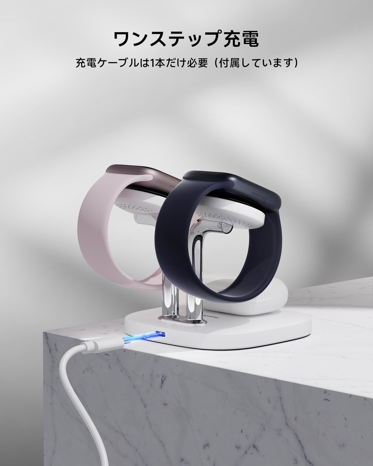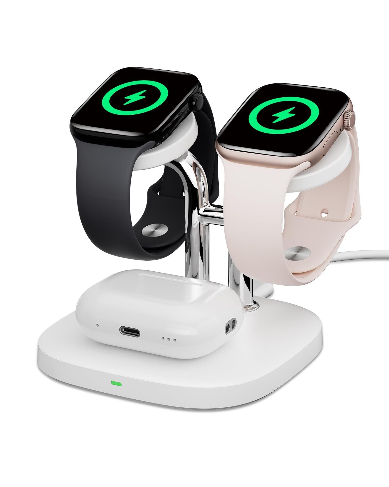 【3in1充電|2台のApple Watchに対応】2台のApple Watchとイヤホンを同時に充電可能。ご家族やカップル、同僚とシェアするのに最適な設計です。