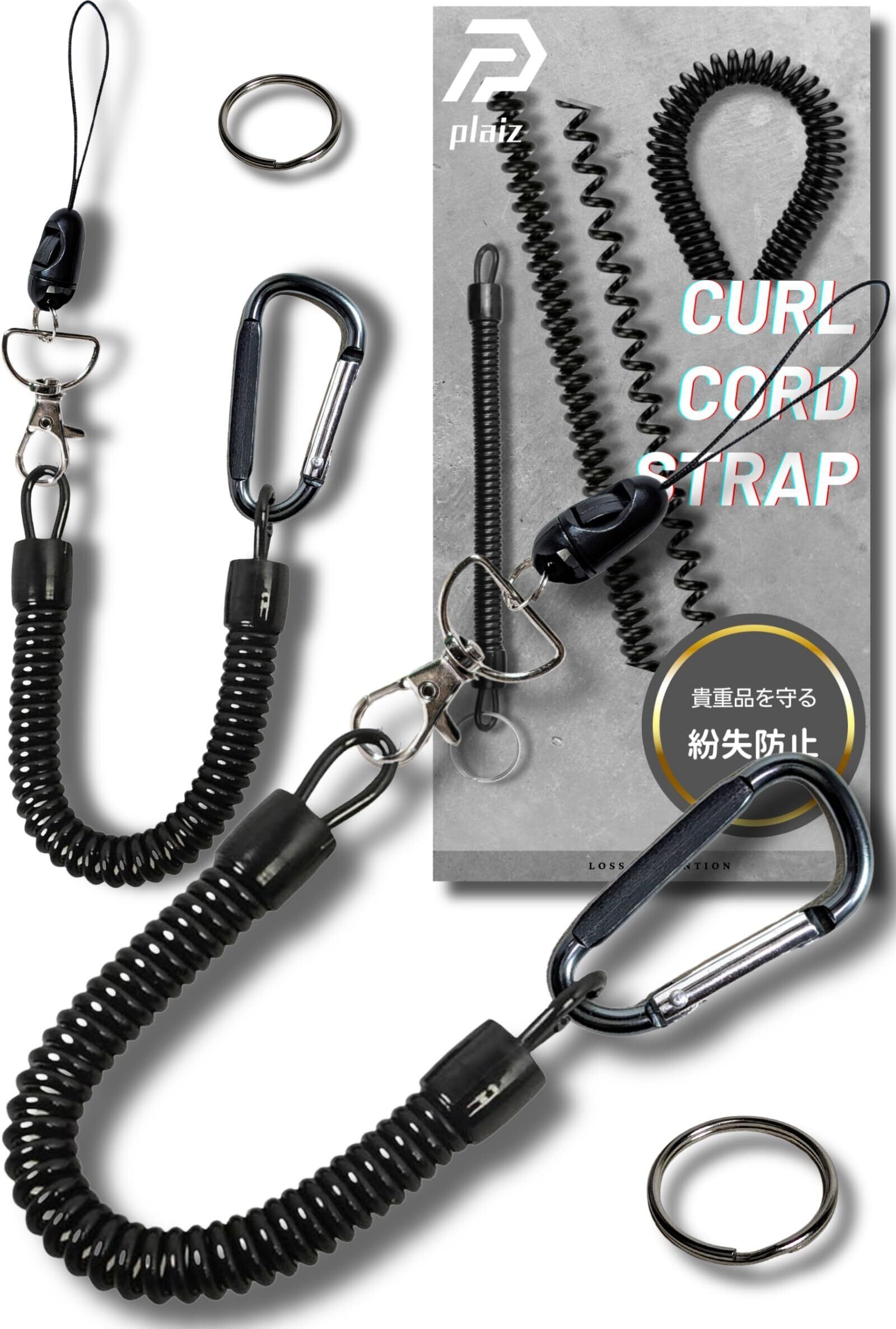 [plaiz] 2025秋最新【伸縮自在 360°回転】 カールコードストラップ コイルストラップ 伸びる 太めタイプ カラビナ リング キーチェーン スマホ iPhone 携帯 定期 落下・盗難・紛失防止 太コイル