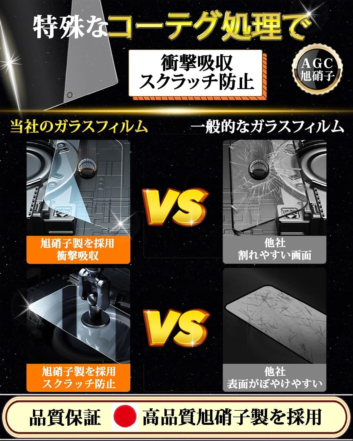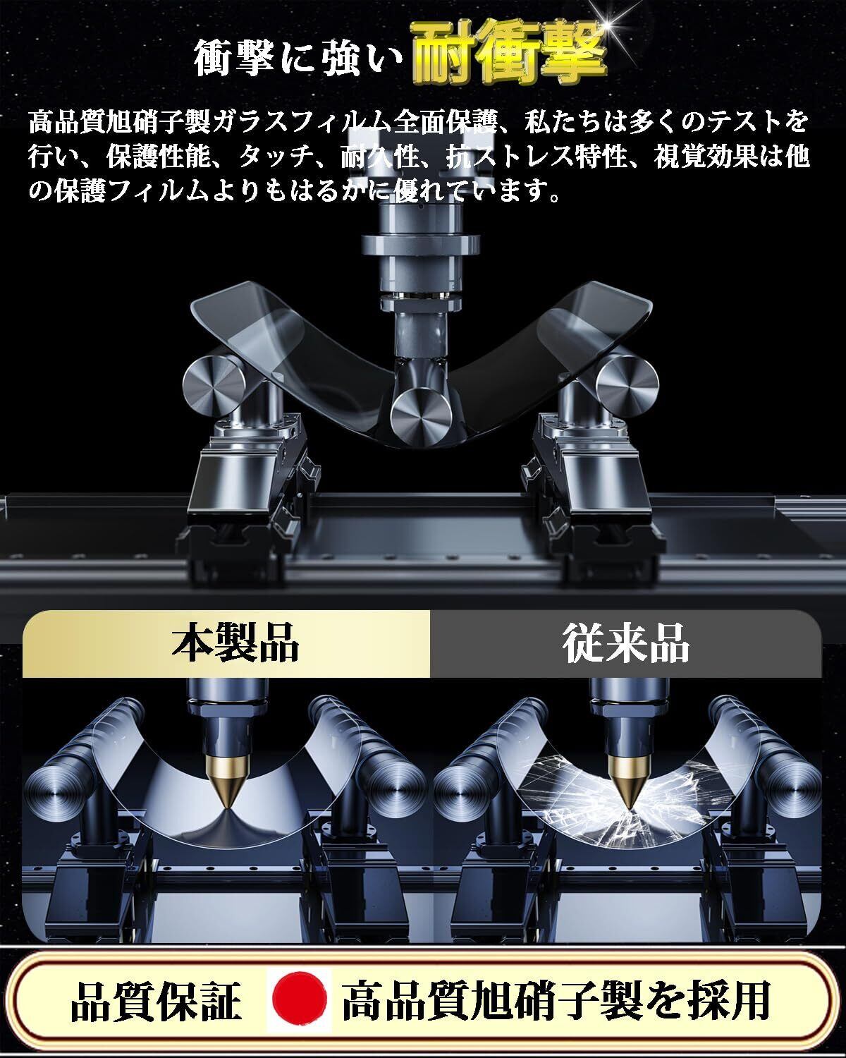 ■【超強化ガラスでしっかり保護!】日本旭硝子の高品質素材を使用し、9Hの硬度を持つこのガラスフィルムは、擦り傷や衝撃から画面をしっかりと守ります。また、飛散防止機能を搭載しており、万が一の落下でも安心してご使用いただけます✨。