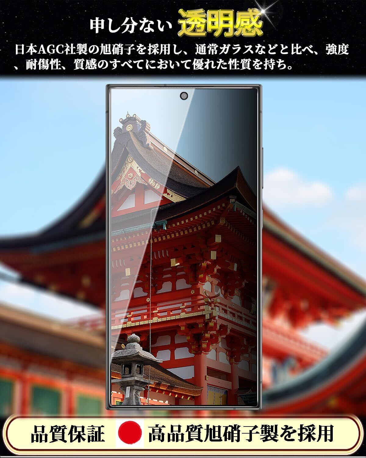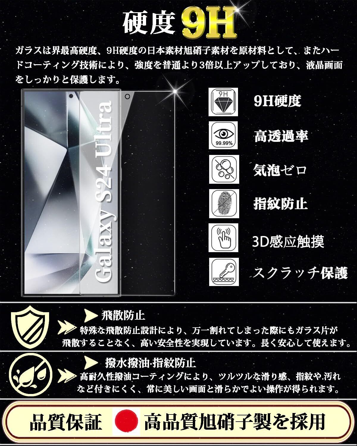対応 Galaxy S24 Ultra ガラスフィルム 覗き見防止 SCG26/SC-52E 強化ガラス ギャラクシーS24Ultra ガラスフィルム 日本旭硝子素材採用 指紋ロック解除対応 Galaxy S24 Ultra のぞき見防止 フィルム 硬度9H 気泡防止 撥水撥油 指紋防止 飛散防止 貼り付け簡単 自動吸着 ギャラクシー S24 Ultra 液晶保護フィルム