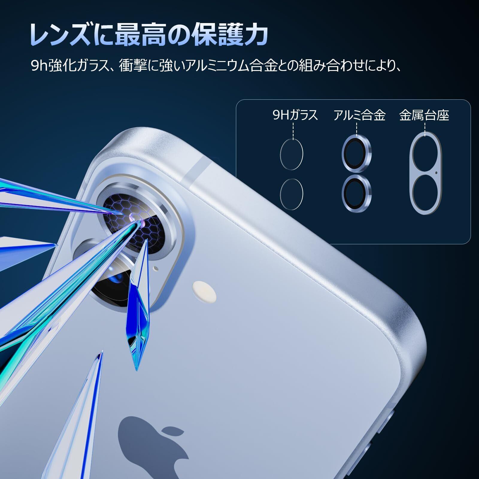 【対応機種】iPhone 17 専用カメラ保護カバー。四角い台座保護部分:アルミ合金 。/// レンズ保護部分:9H強化ガラス・日本旭硝子製・傷がつきにくい