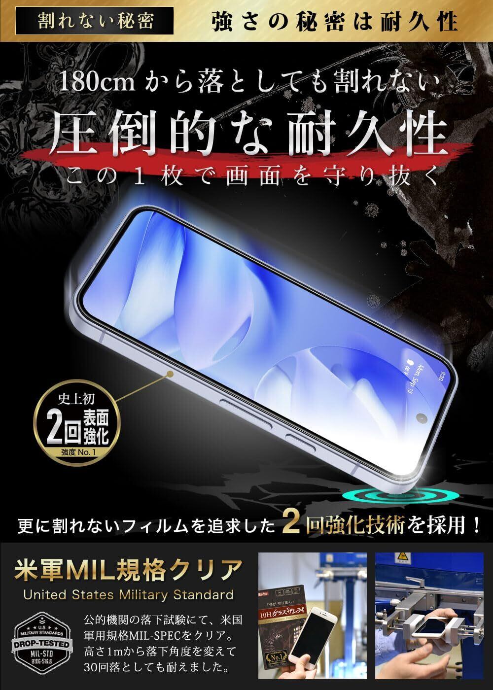 ■【米軍MIL規格準拠・信頼の耐久性!】このガラスフィルムは、米軍のMIL規格に準拠しており、厳しいテストをクリアした耐久性を誇ります。安心して持ち運びながら、長期間にわたって性能を発揮します✨。